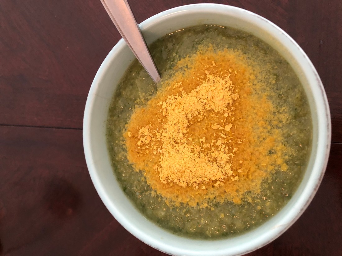 I enjoyed leftover veggie soup last week, need to recreate it again. This one had broccoli, cauliflower, celery, potato, parsley and copious amount of nutritional yeast as topping.