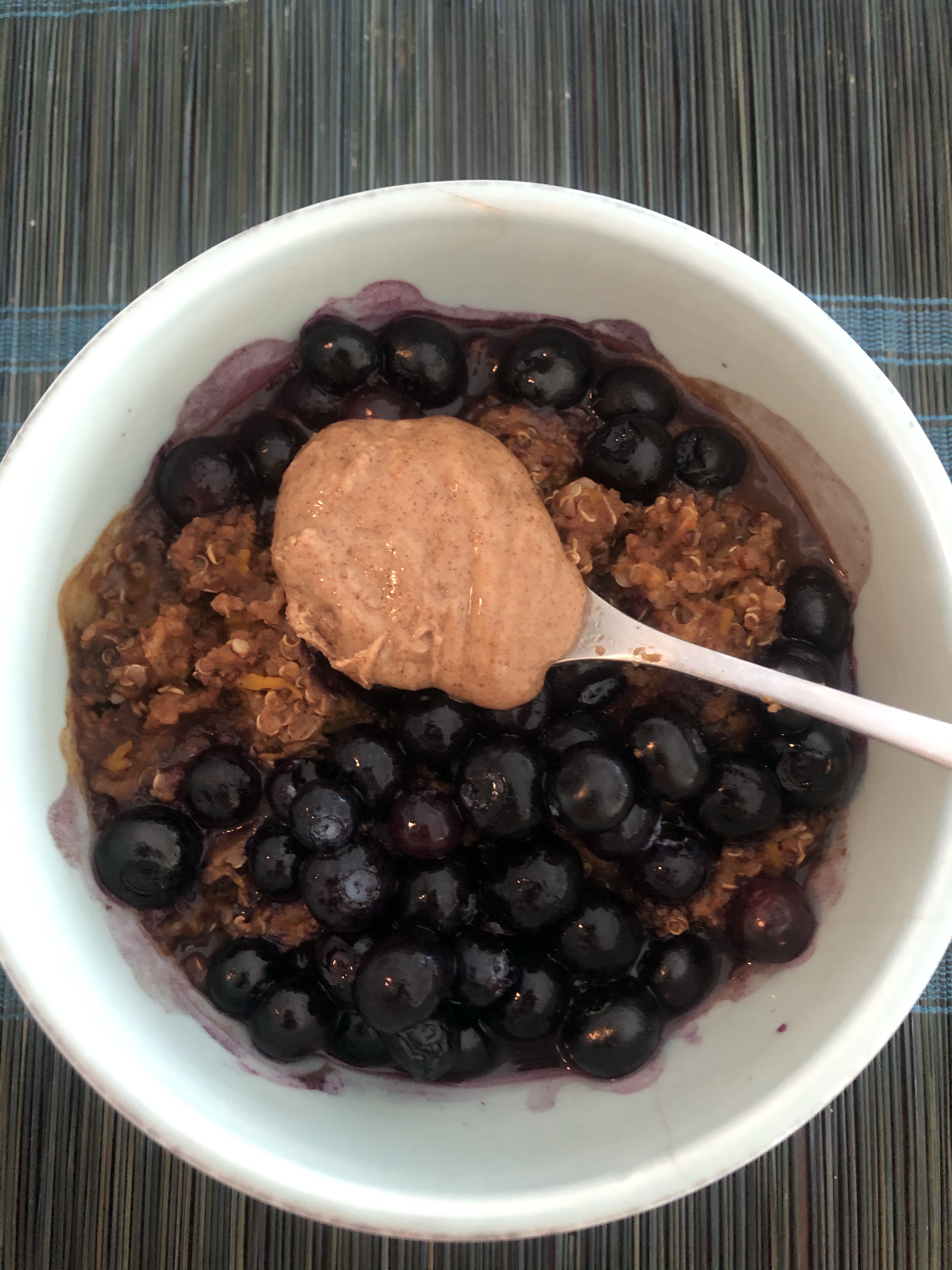 I found some frozen blueberries in Costco and started having them in my quinoa oatmeal and loving it.