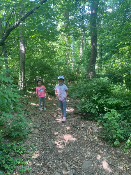 Yesterday we split, I took the girls to explore new playgrounds and husband did some online shooing returns and groceries. The new playground we went was small and we decided to leave after a while. We were by the side of rock creek park trail, one of my favorite places to do long runs. I asked the girls if they wanted to do some hiking and they happily agreed without knowing what they signed up for. 🙂