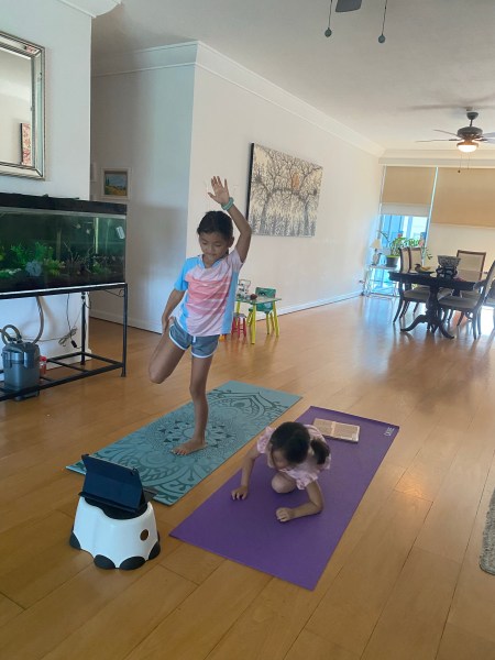 The girls have been doing some sort of morning exercise too. Either kids workout or yoga.