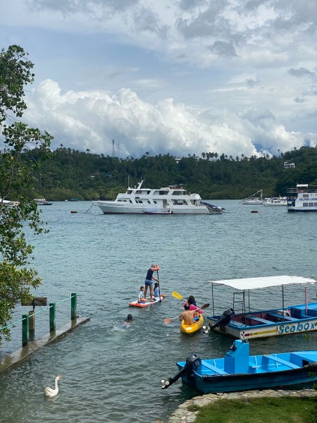 this morning we departed t 6am, per recommendation of the boat man. The earlier the better to avoid bumpy ride. Yet when we met with him he said it was very rough so he’d found a different pier, maybe less bumpy. We were all very nervous as we now knew what it was about. Fortunately the ride was short, 30 min and we were at the new pier. We had to transfer to a small manual boat to get to the shore but that as fast and quick. We arrived home 4hrs after we departed, in one piece, and no threw up along the way.