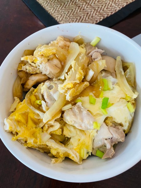 I made a new Japanese dish for their lunch, chicken egg concoction over rice. They seem to like it a lot!