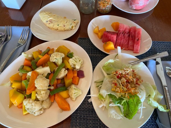 My morning started again with gym (loving working out without rush) and breakfast. Options are rather limited but at least a got a good combo of veggies, eggs and fruit. I couldn’t finish the plate of veggies