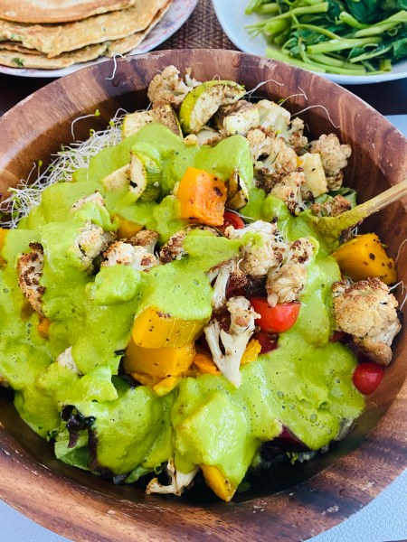 I made a green dressing and half way used some nori sheets to make wraps. YUM