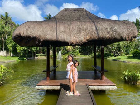 I sign up for a restorative yoga session and the girls checked around the lagoon