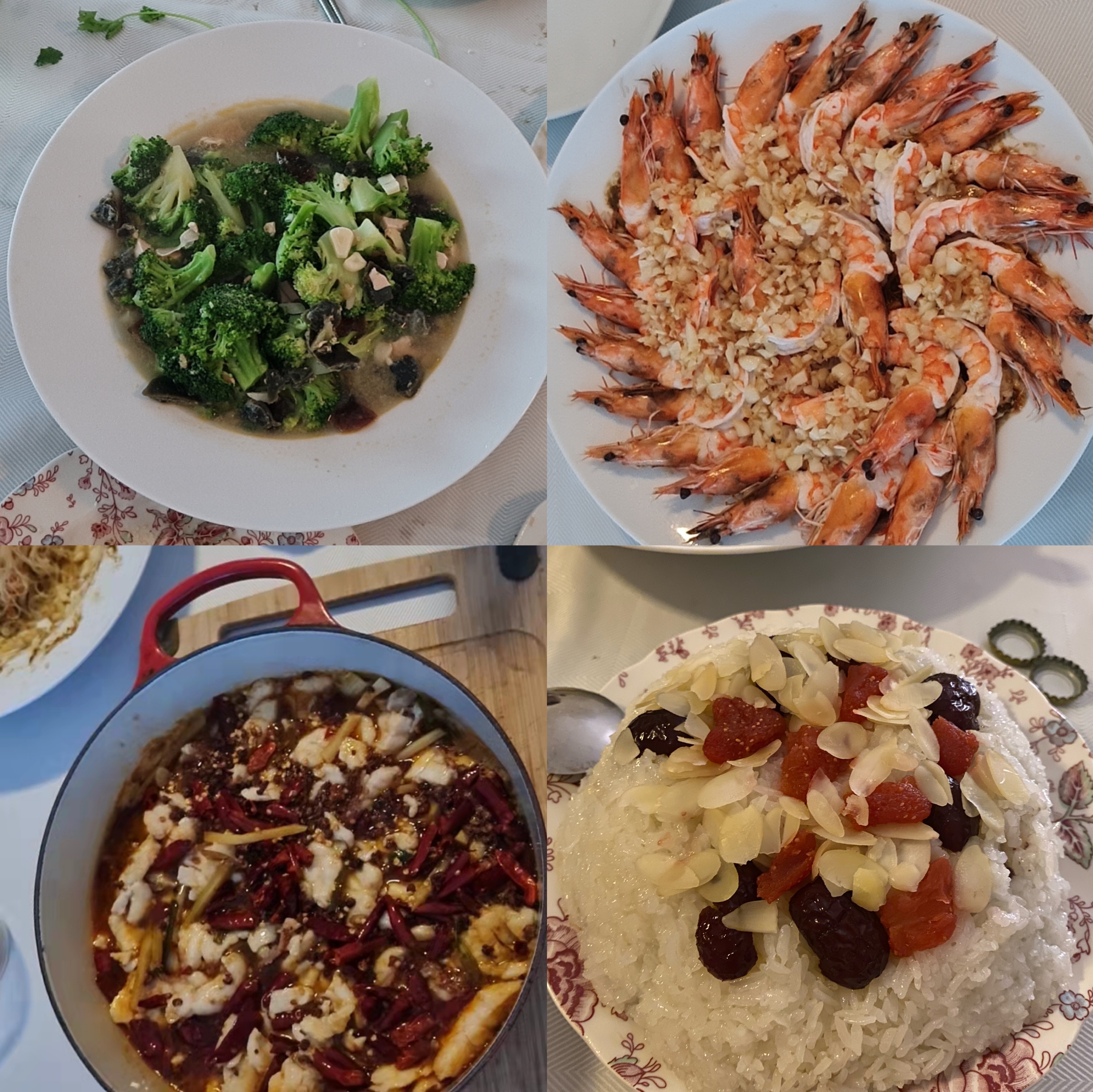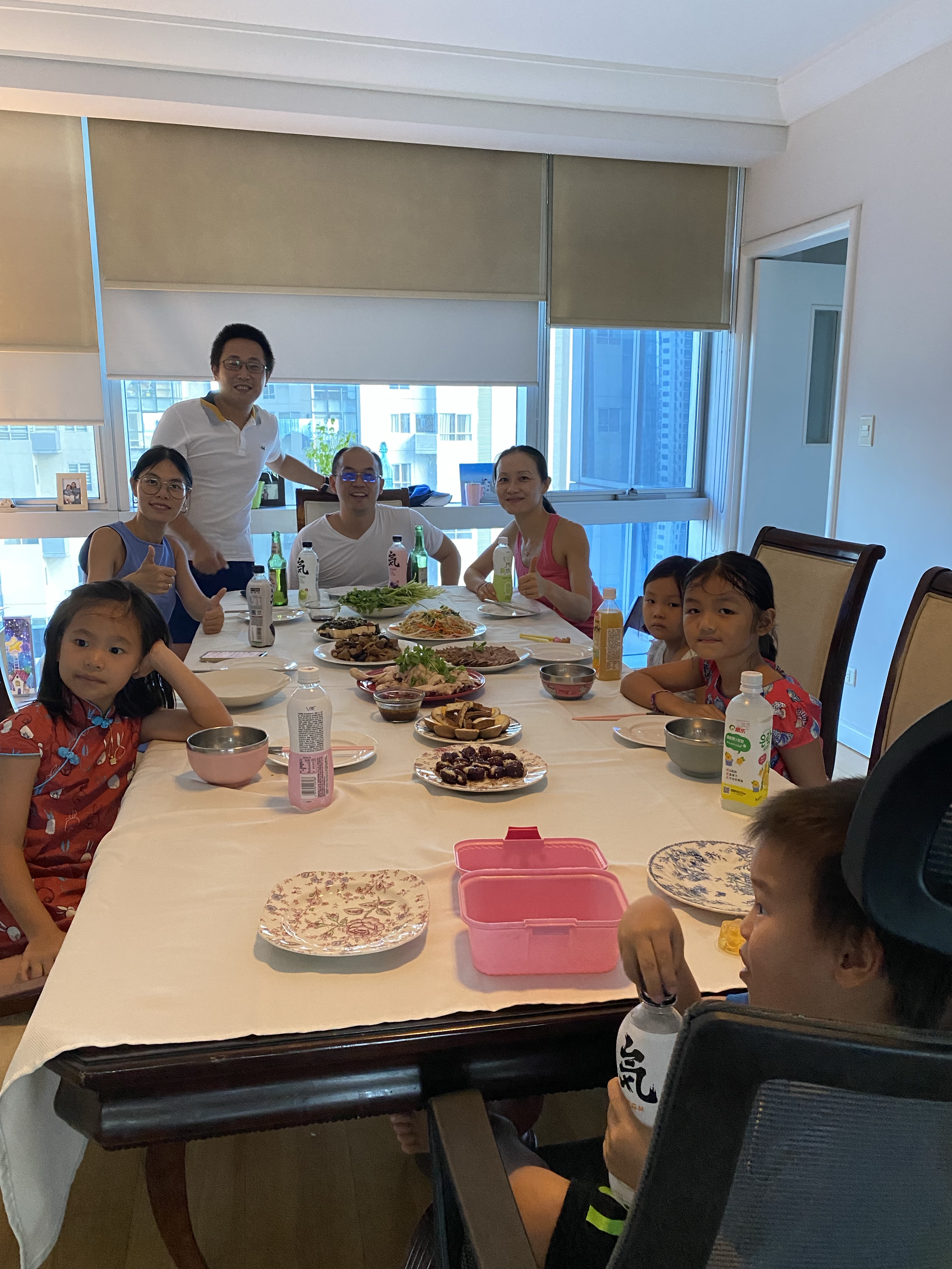 We prepared 7 cold dishes, 5 hot dishes, 1 soup, and 1 dessert. Our friends came over around 3pm, first a table full of snacks for adults and kids. Then we started dinner at 4:45pm so we have enough time to eat and digest.