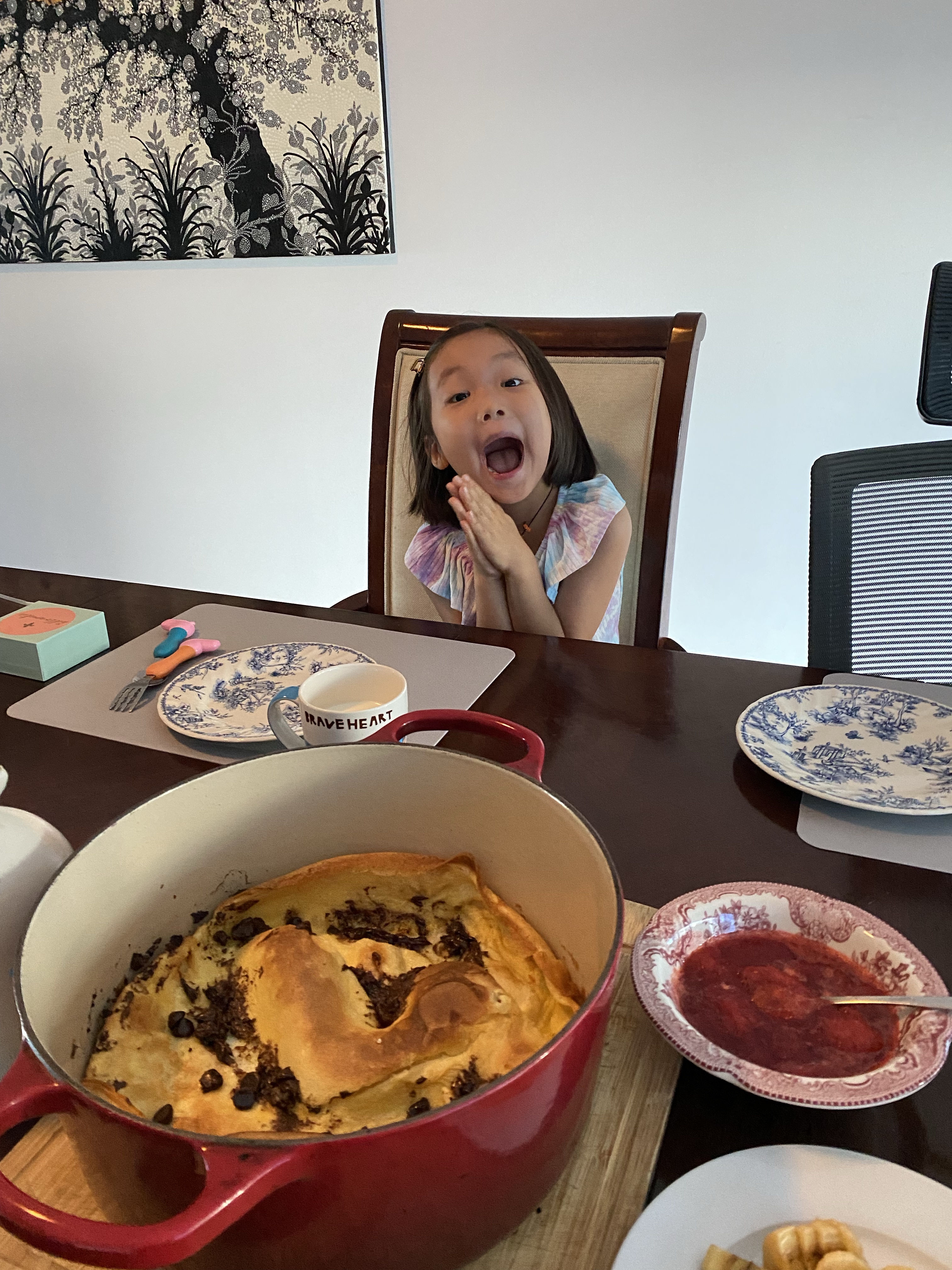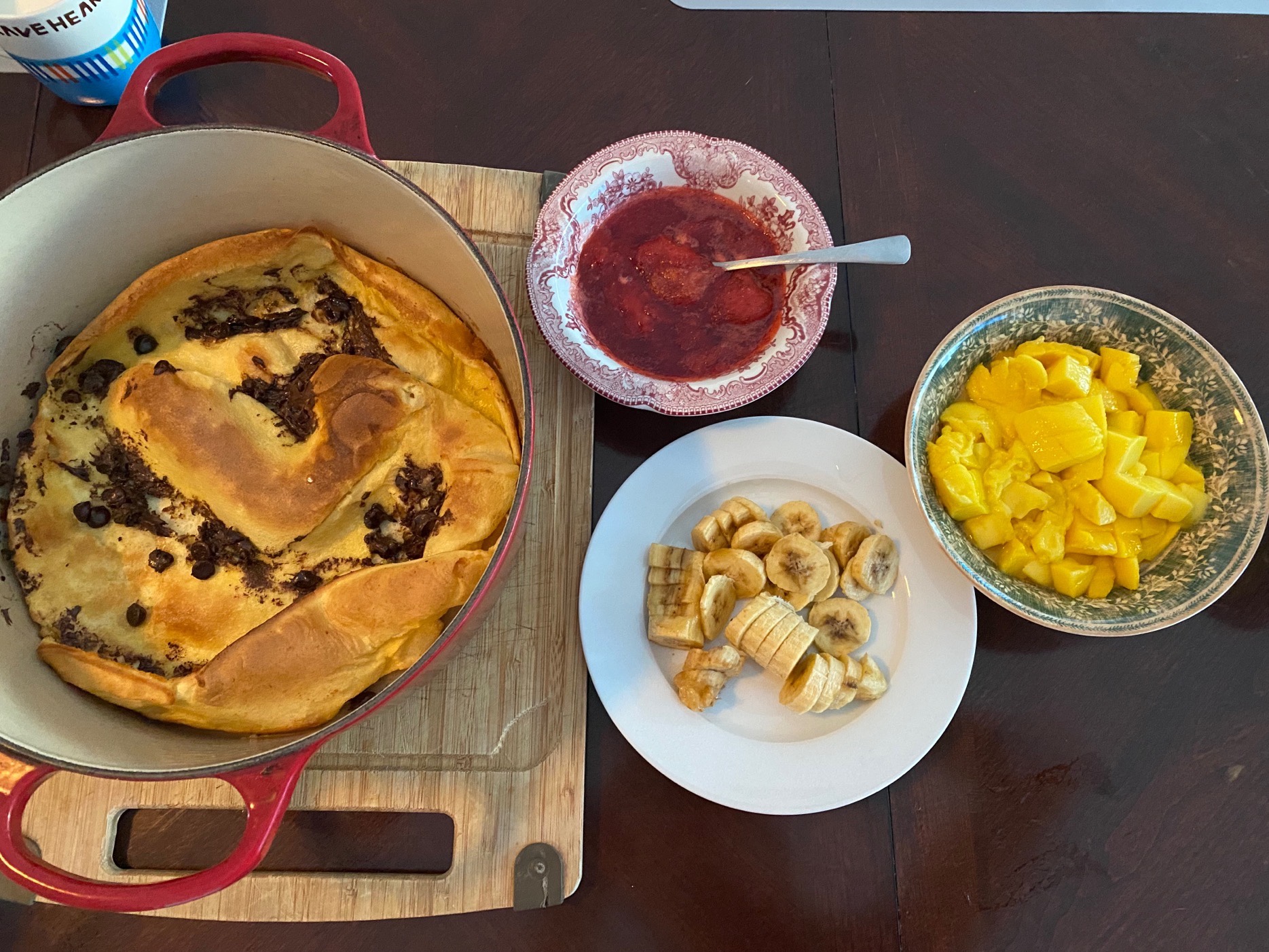 Despite the “new”, I made sure we had a fun weekend that started with dutch baby pancakes with chocolate chips