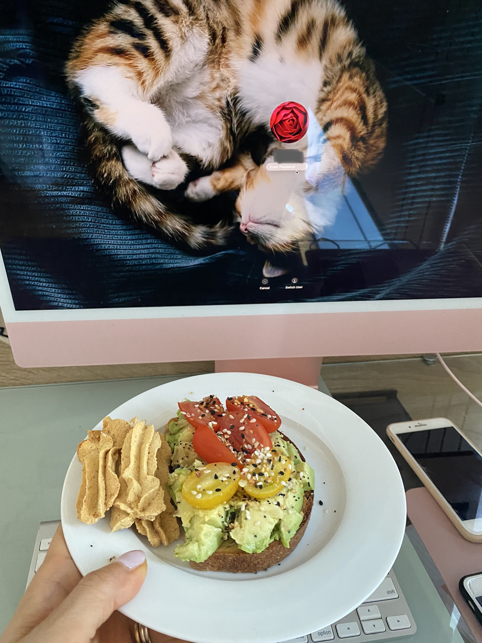 I spent the morning in the office, eating up all my packed breakfast/snack/lunch by 11am. It is that kind of hungry that cannot be ignored, imparting my attention spam. So by 2pm, I decided to go home to refuel and brought work back. I was almost dreaming the avocado toast on my walk back, paired it with some coconut butter cookies. Finally, my hunger subsided until dinner time.