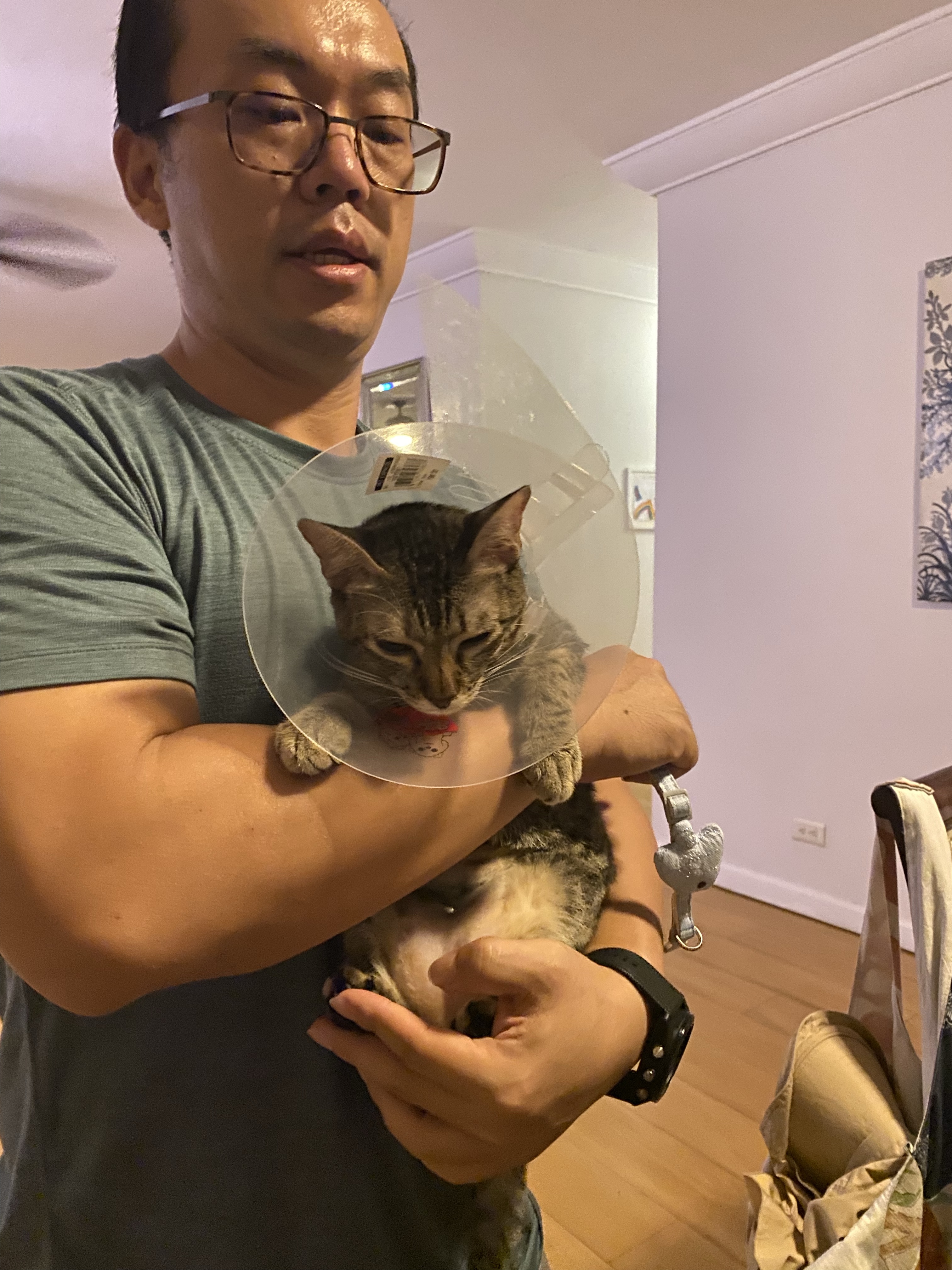 Our weekend started on Friday, day off for me. Hubby took Cookie for a surgery (so she cannot be pregnant). She presented signs of needing to be in pregnant last week (weird moves), so we schedule the surgery. Poor Cookie had to fast over night, then spent the whole day at vet. Hubby and the girls pick her up and she looked scared, fragile, weak. They bought her a collar so she wouldn’t lick her belly. All of us felt bad for her. The girls didn’t know how to explain their feelings so I told them what you feel is what I feel when any one of you get sick. Fortunately Cookie seems to be doing okay the next day. Still not as active as before but pretty normal.