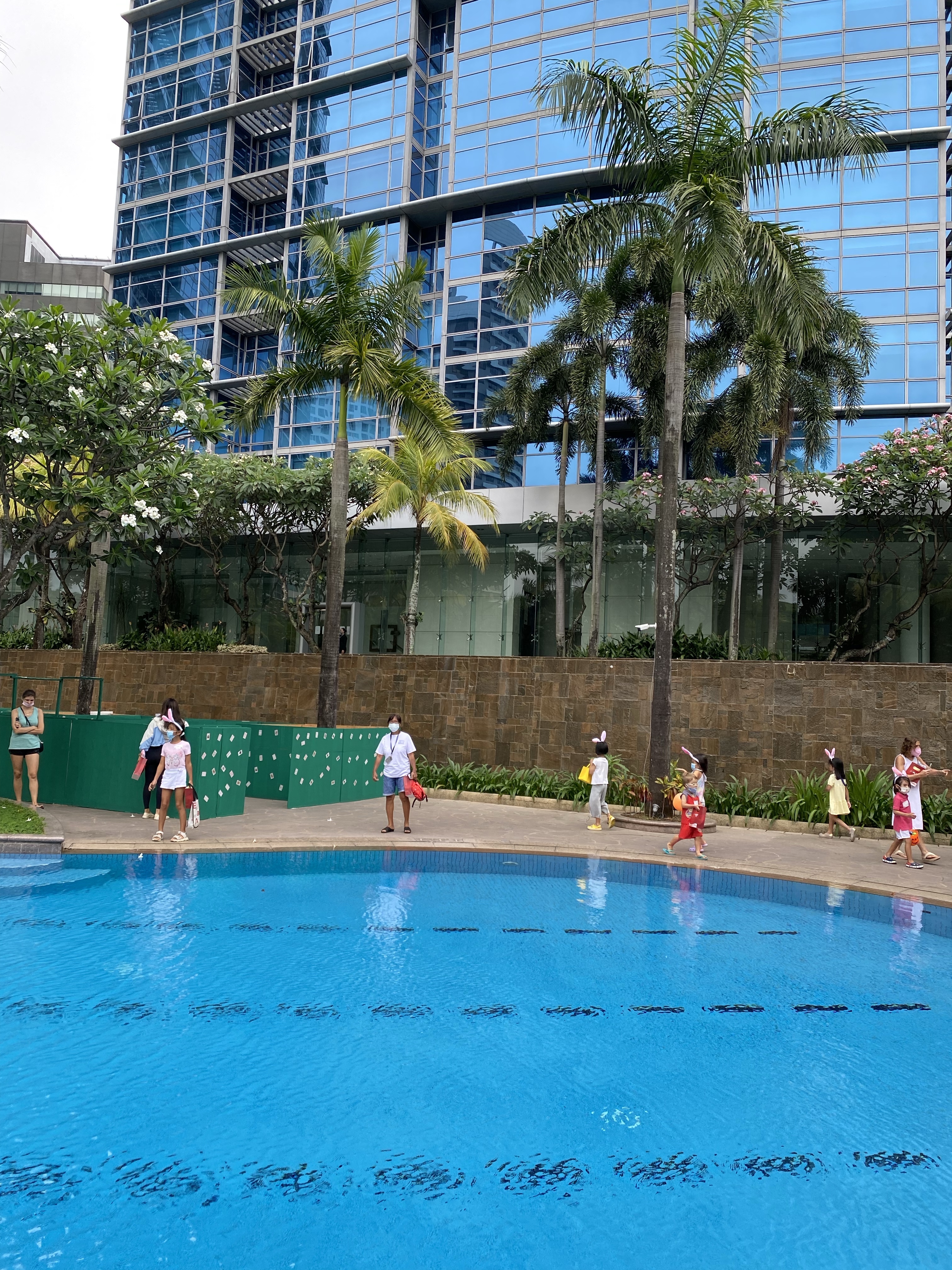 We had a wonderful Sunday that started with egg hunt organized by our building. Filipinos really get into festivals and the functional room was decorated for the occasion. Girls got excited for the hunt