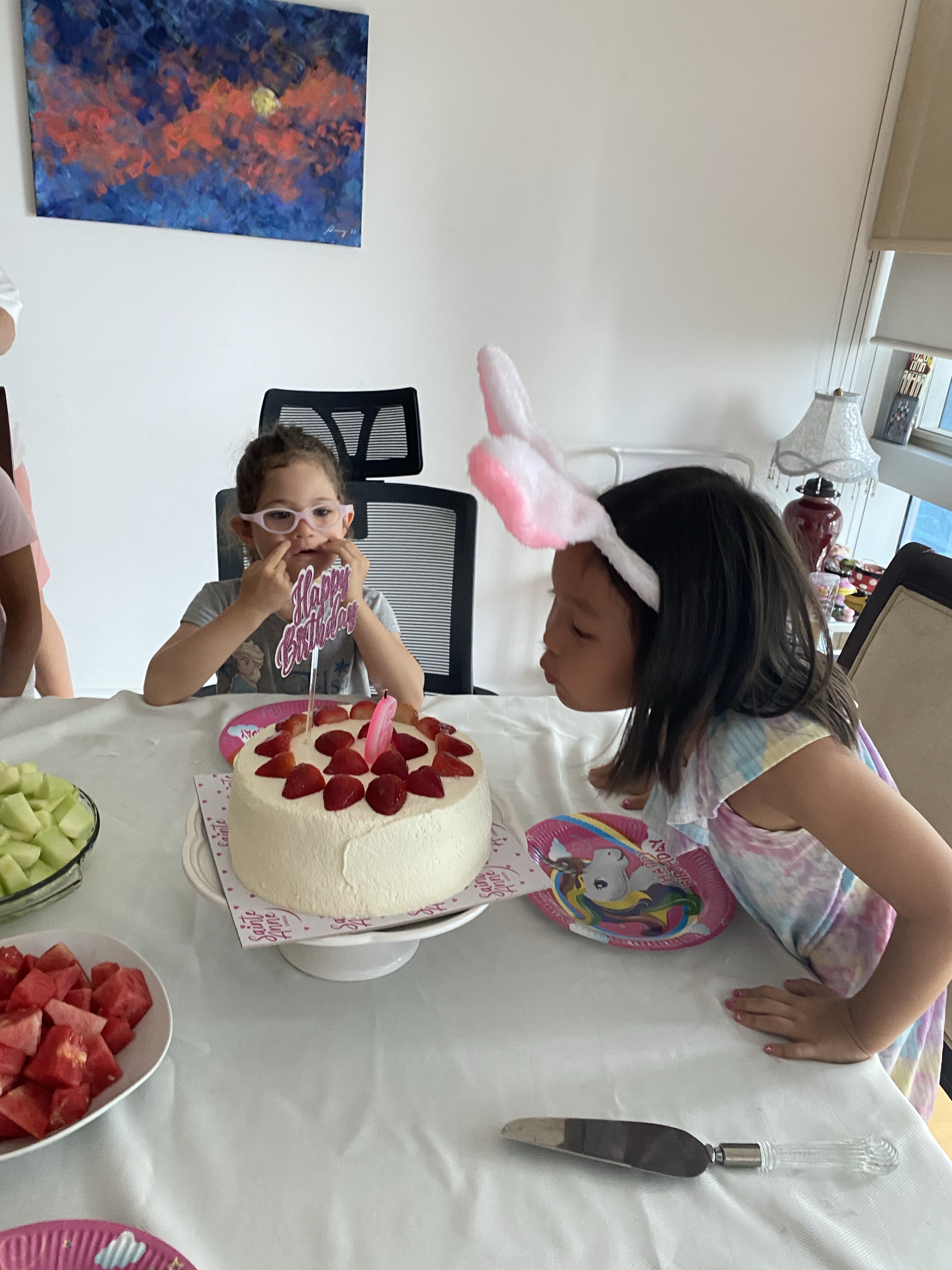 party was ready. As we walked home, I reminded Lizzy time to finish her homework. She reluctantly agreed and had zero suspicion. When we entered the room, her friends, her teacher, the balloons overwhelmed her. She froze for quite a while not sure what was happening! hahaha…. such a joy to see her reaction. The party facilitators (one was Lizzy’s previous pod teacher) started with a first activity, which is to ask her friends to write birthday wishes for Lizzy.