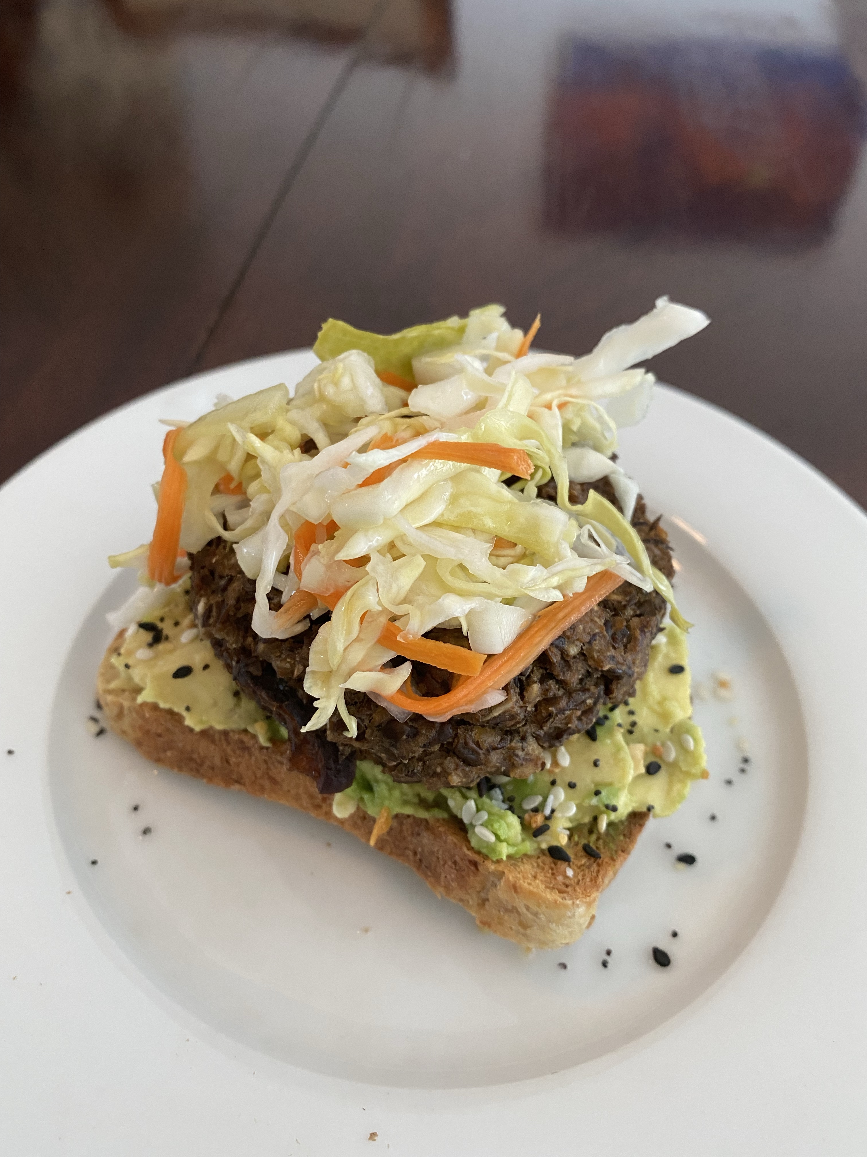 I had a great breakfast combo: toast with 1/2 avocado, lentil burger and homemade pickles, really really good!!!