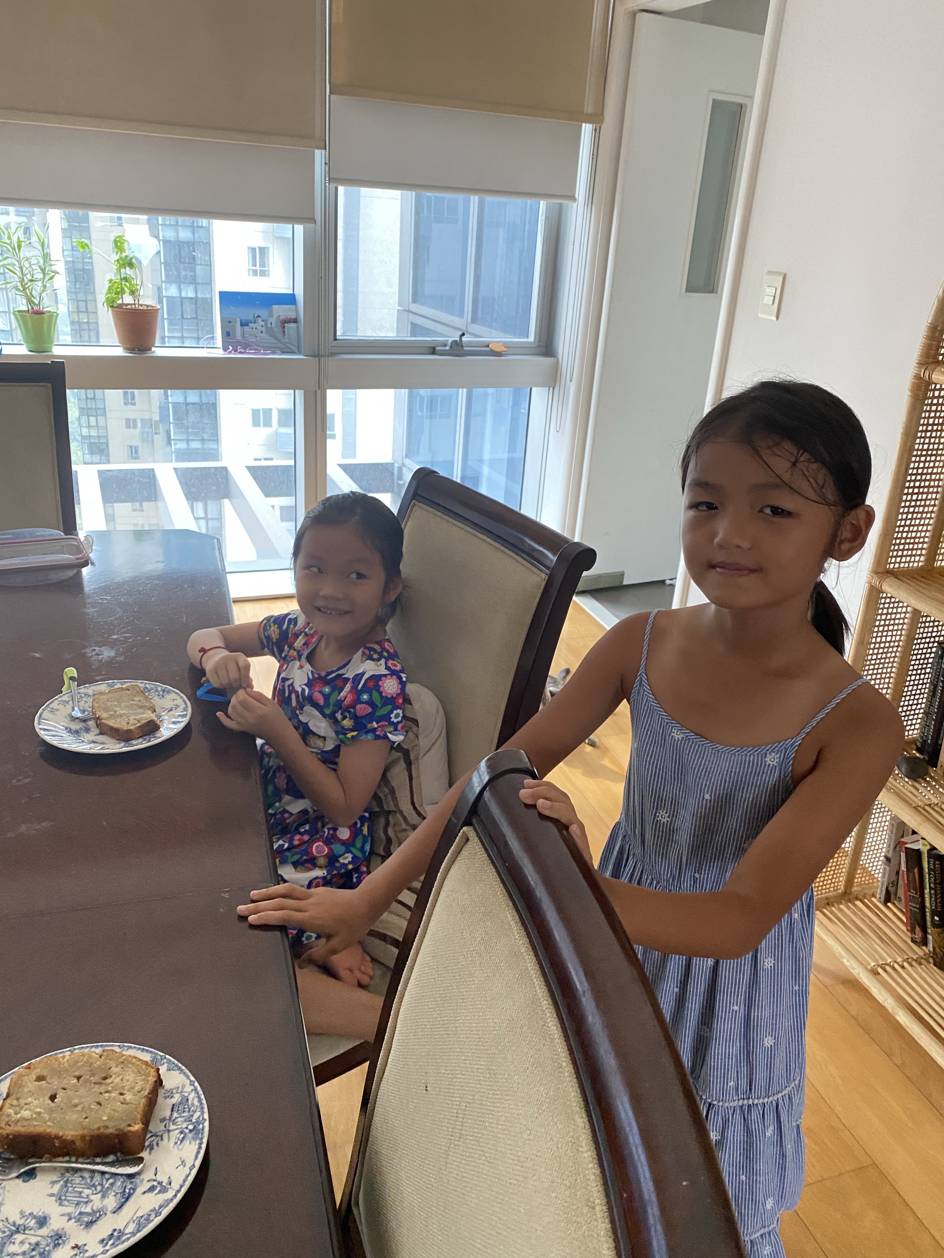 When I got home, Sofia was preparing breakfast for Lizzy, the banana bread she baked over the weekend. Wooo… she’s suddenly a mini adult!