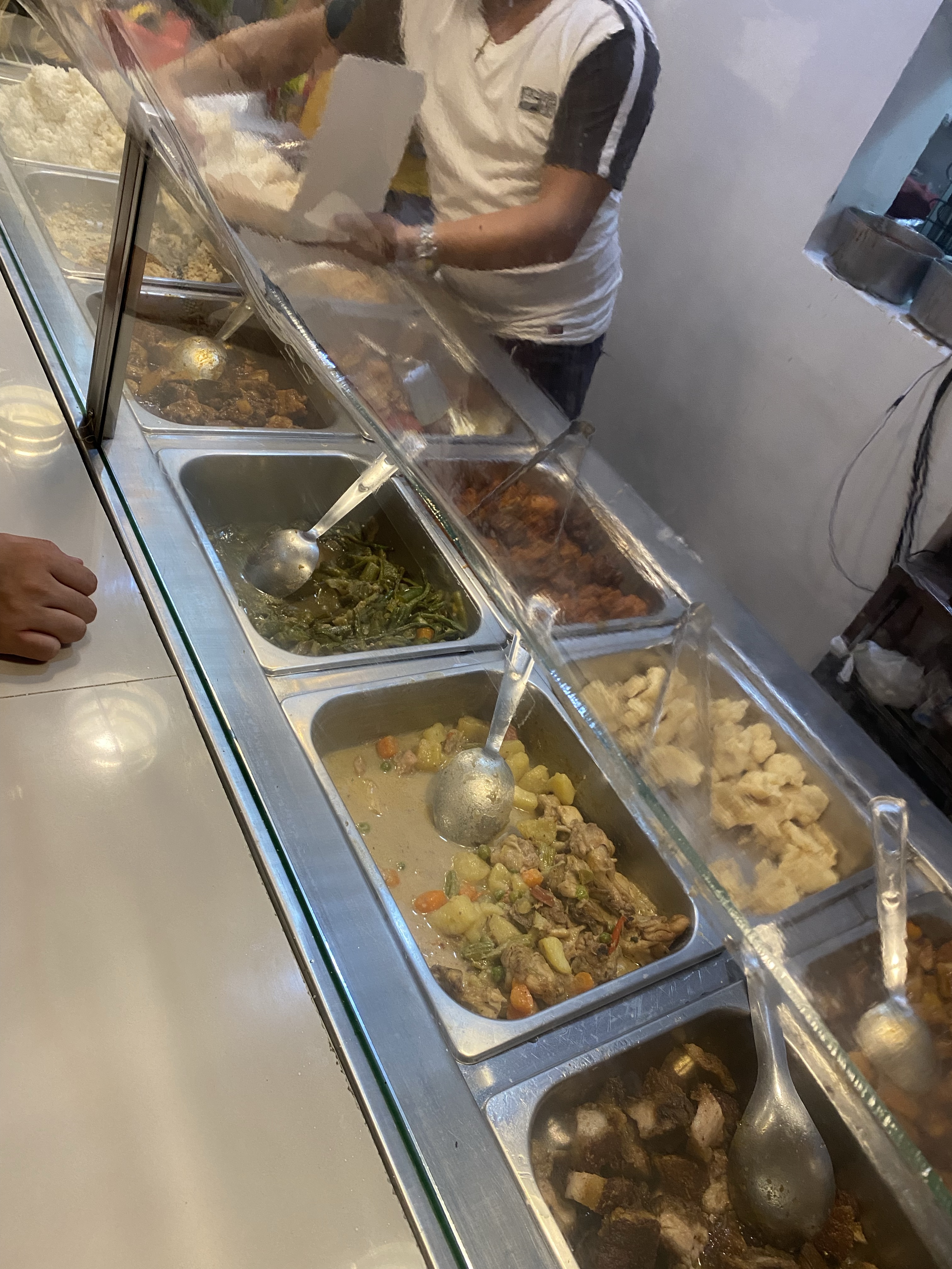 Yesterday I didn’t have lunch plan, was working nonstop and one of my colleagues was going out for lunch. I joined her. I told her let’s go where you were planning to go, not those places that non-locals go for lunch. So she took me to where our local staff goes for lunch most of the days. They serve several meat dishes (chicken or pork), one vegetable dish, rice and noodles.