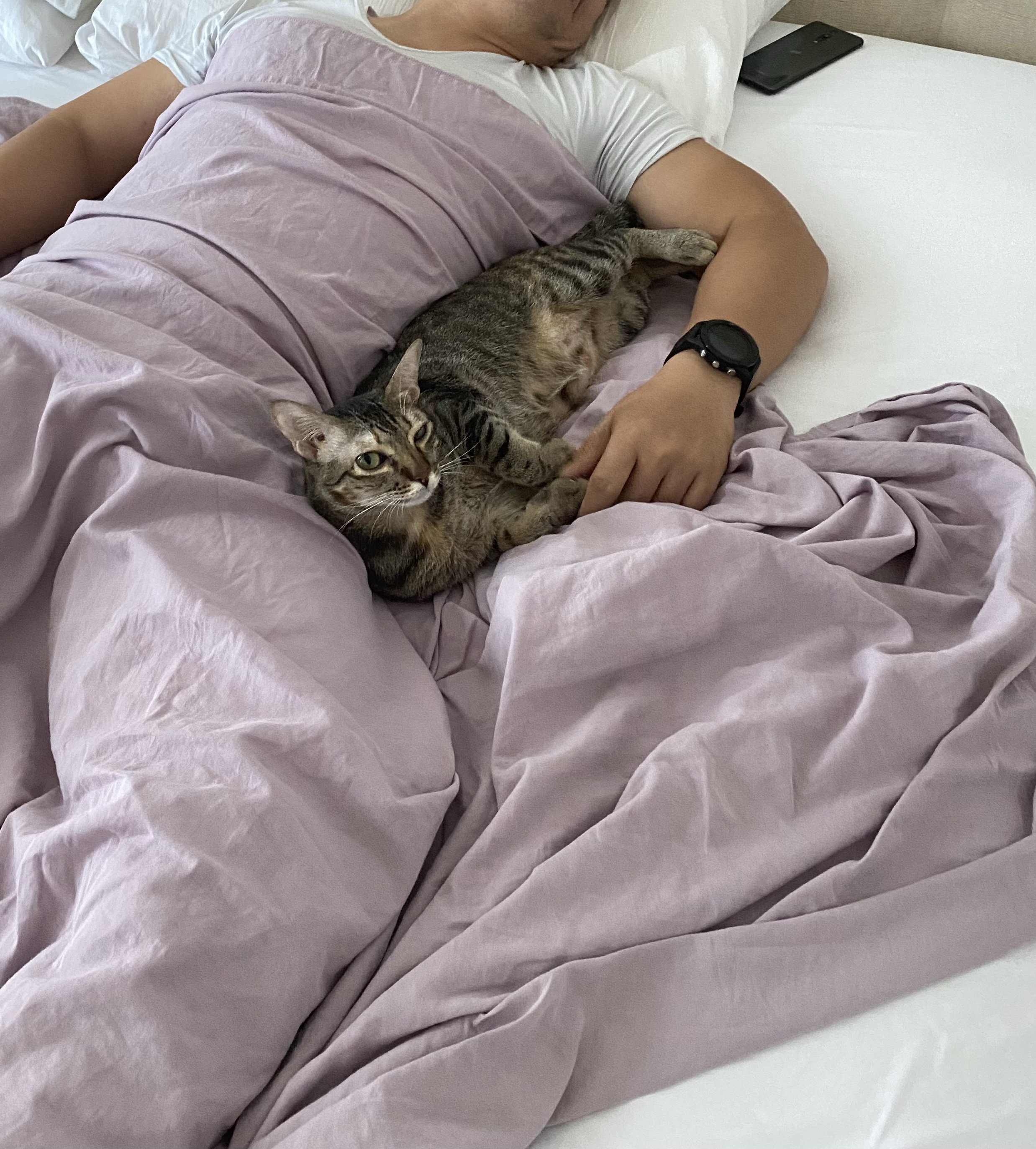 Lunch was about to be served so I came to check on husband who didn’t sleep well the night before and was taking a nap. Look who I found with him. It made me smile to see this. πŸ™‚