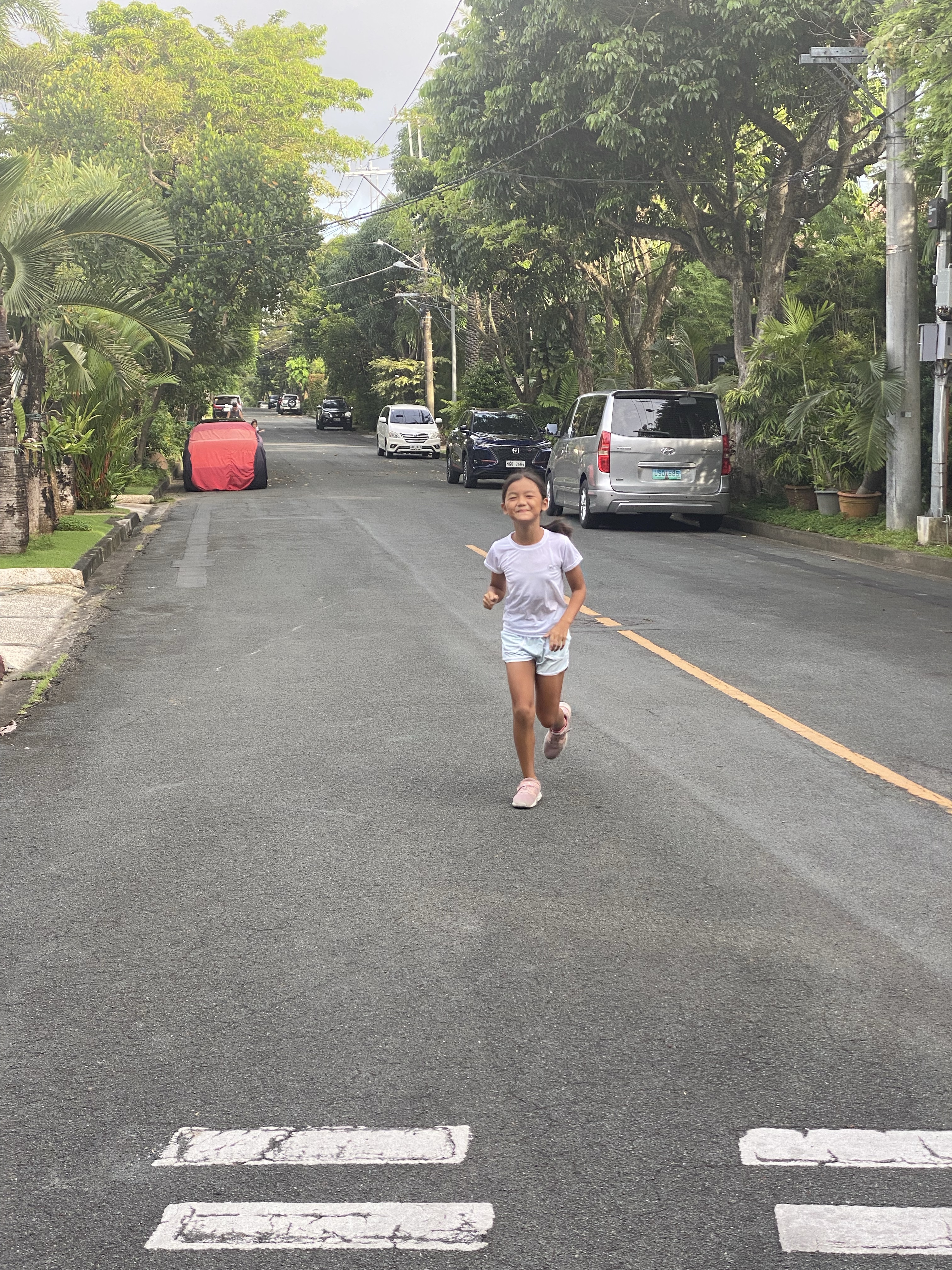 She is not as girl as other girls of her age. She prefers running outfit than a dress, she value comfort over pretty, she doesn’t like when I remind her to apply sunscreen, she doesn’t have the asian value of pale skin for girls. She is just easy going and doesn’t have too much of her appearances. Yet, i notice she loves wearing short shorts/skirts to show off her legs. hahahah