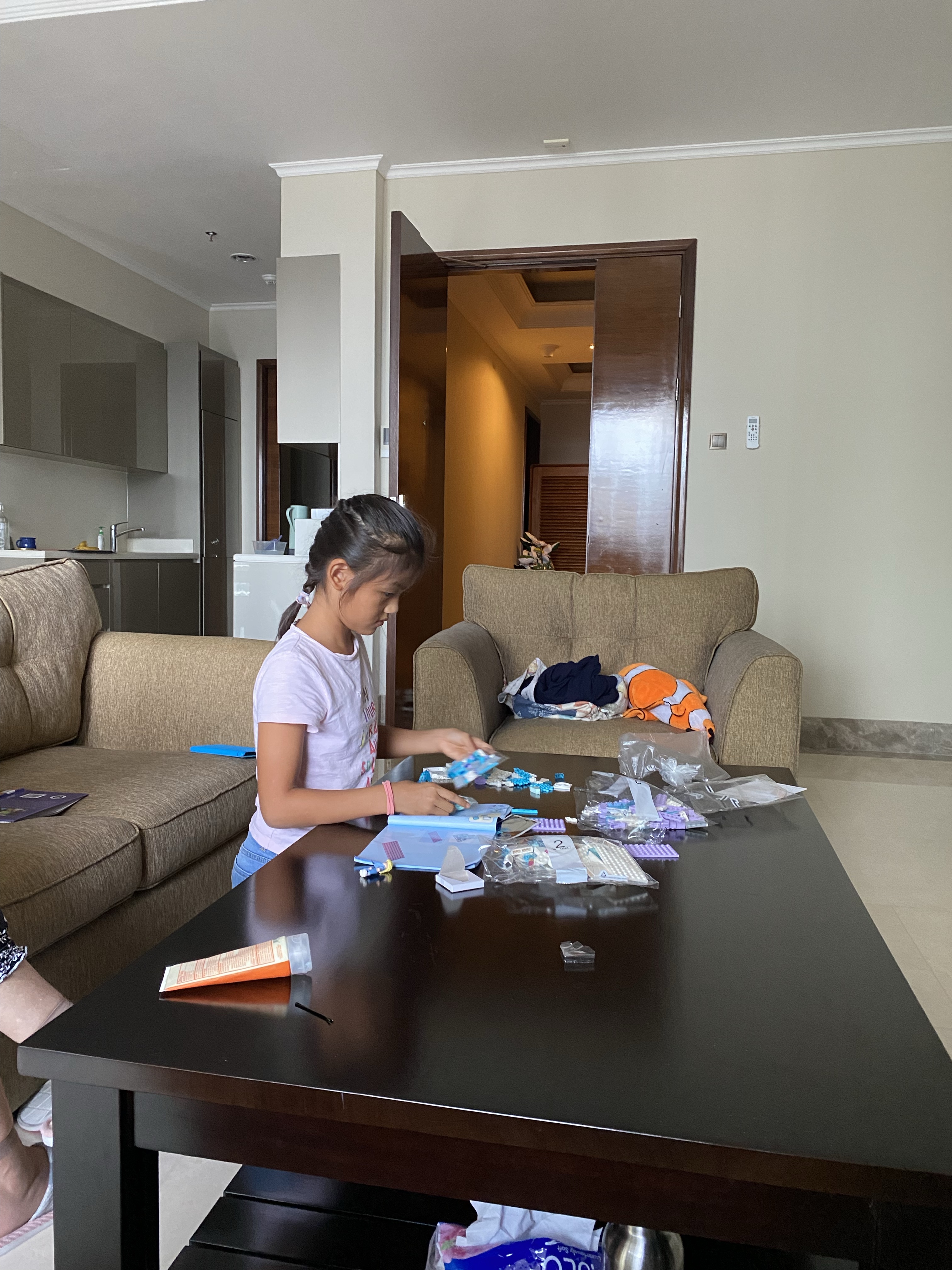 Sofia did a good job finishing her lego just before lunch. Then they agree to break it in one week time so Lizzy can build it.