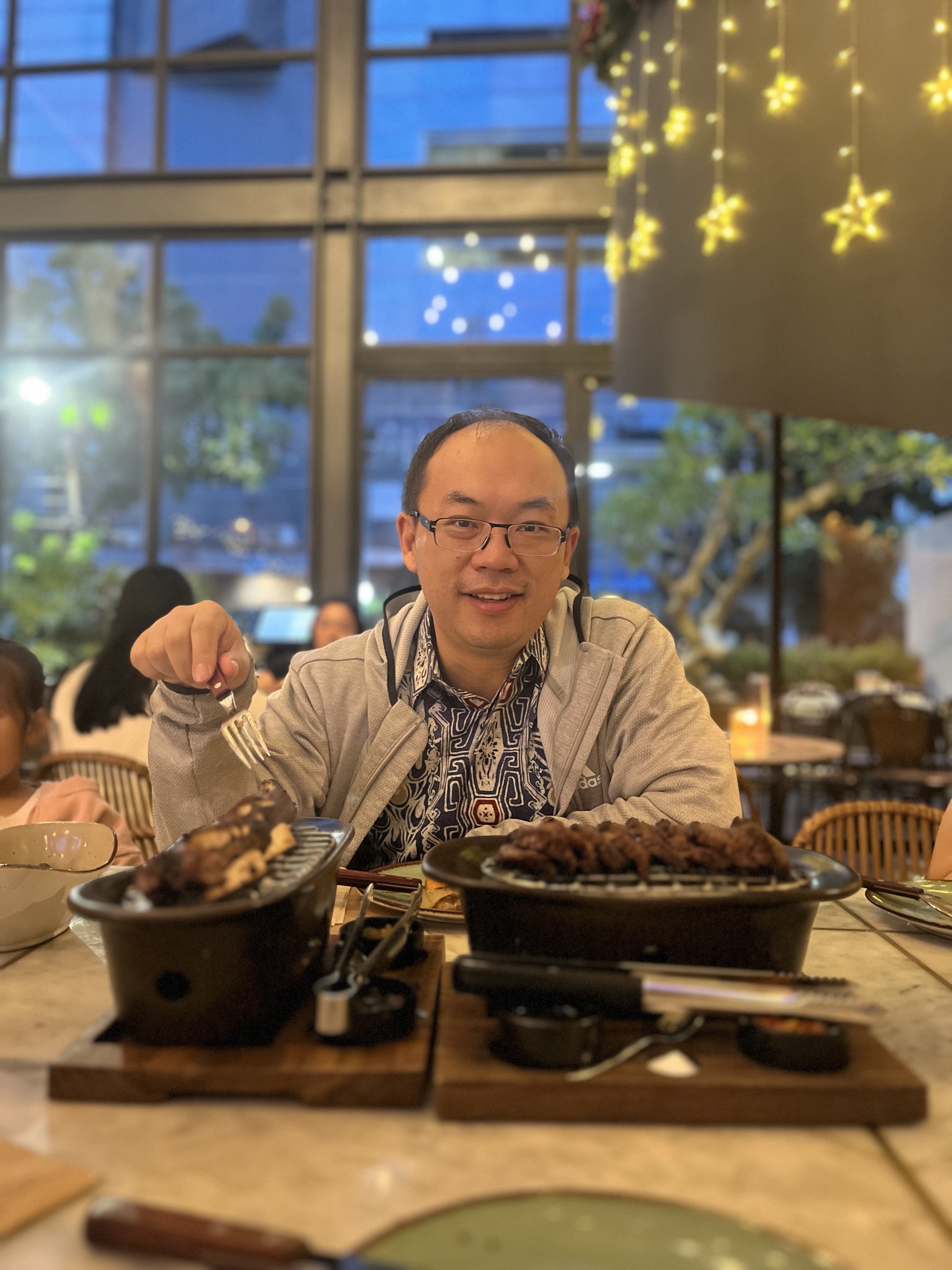 We celebrated hubby’s birthday on Saturday. It was planned ahead of time with a special dinner. He wore the batik we got him for present. Now he looks local. πŸ™‚