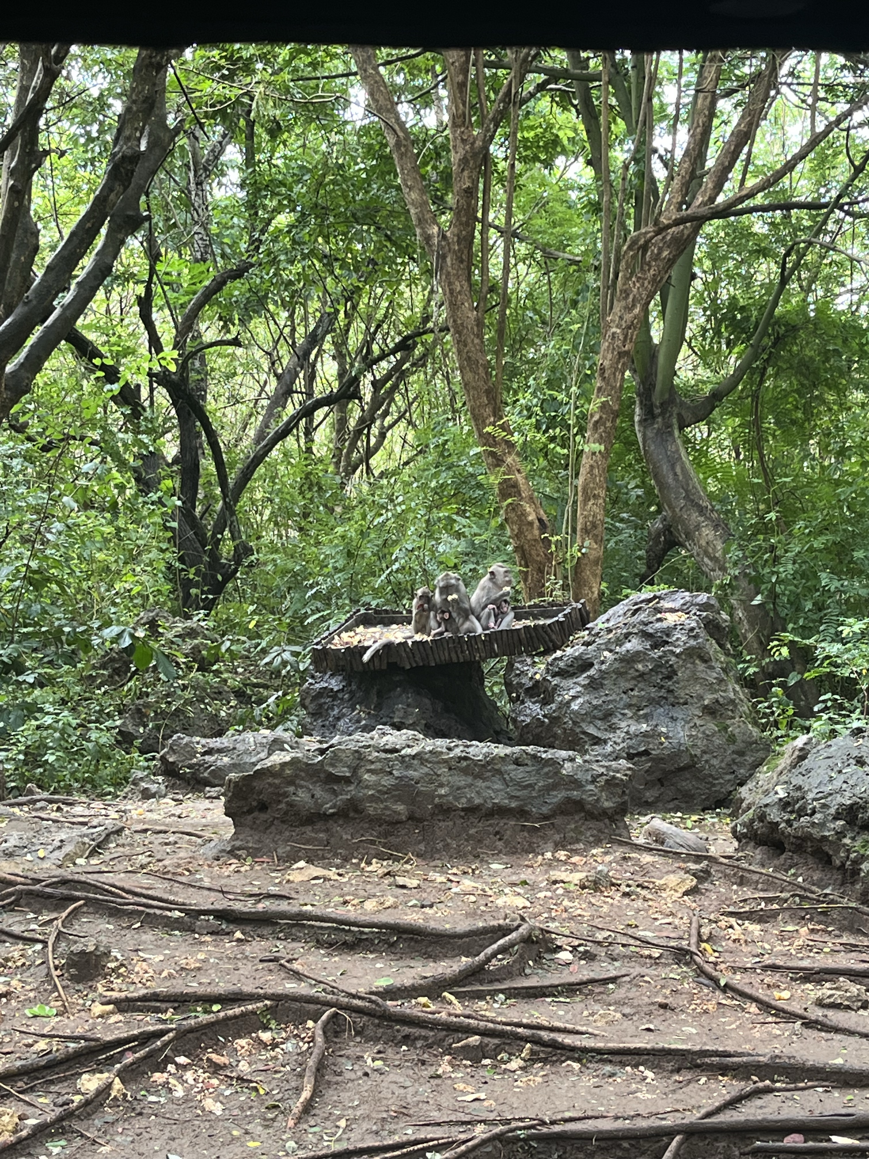 I woke up with some rain but it stopped just before we left the hotel to go to the beach. We saw many monkeys on our way there.