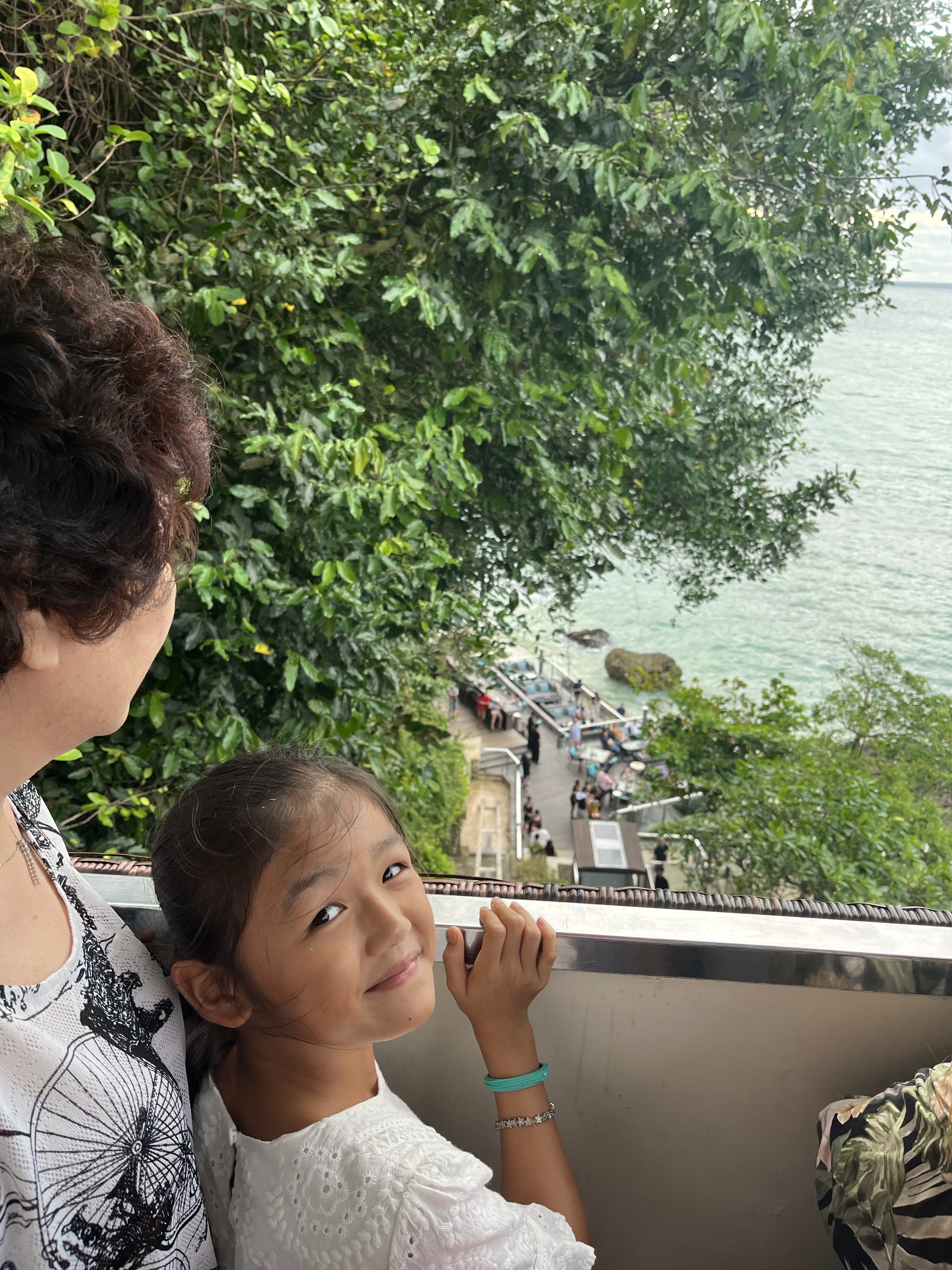 Since we were on the cliff, going down to the beach requires many steep steps. This is not friendly for kids and elderly so the hotel built an elevator on the cliff!!! So cool.