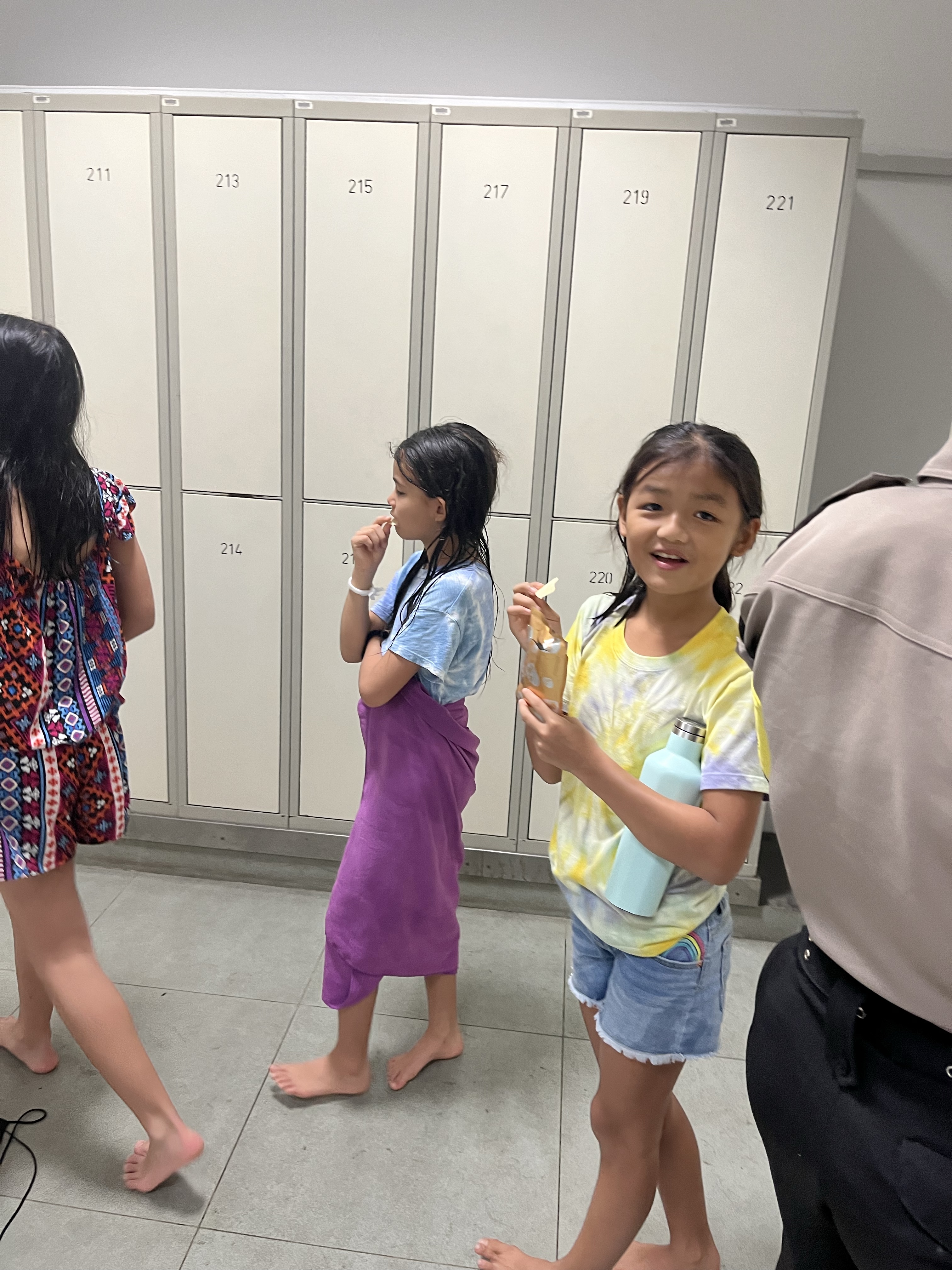 Seeing Sofia with her new friends/team mates being so comfortable together made me smile. One of the girls locked the locker door and couldn’t open it until the security came. They shared snacks while waiting.