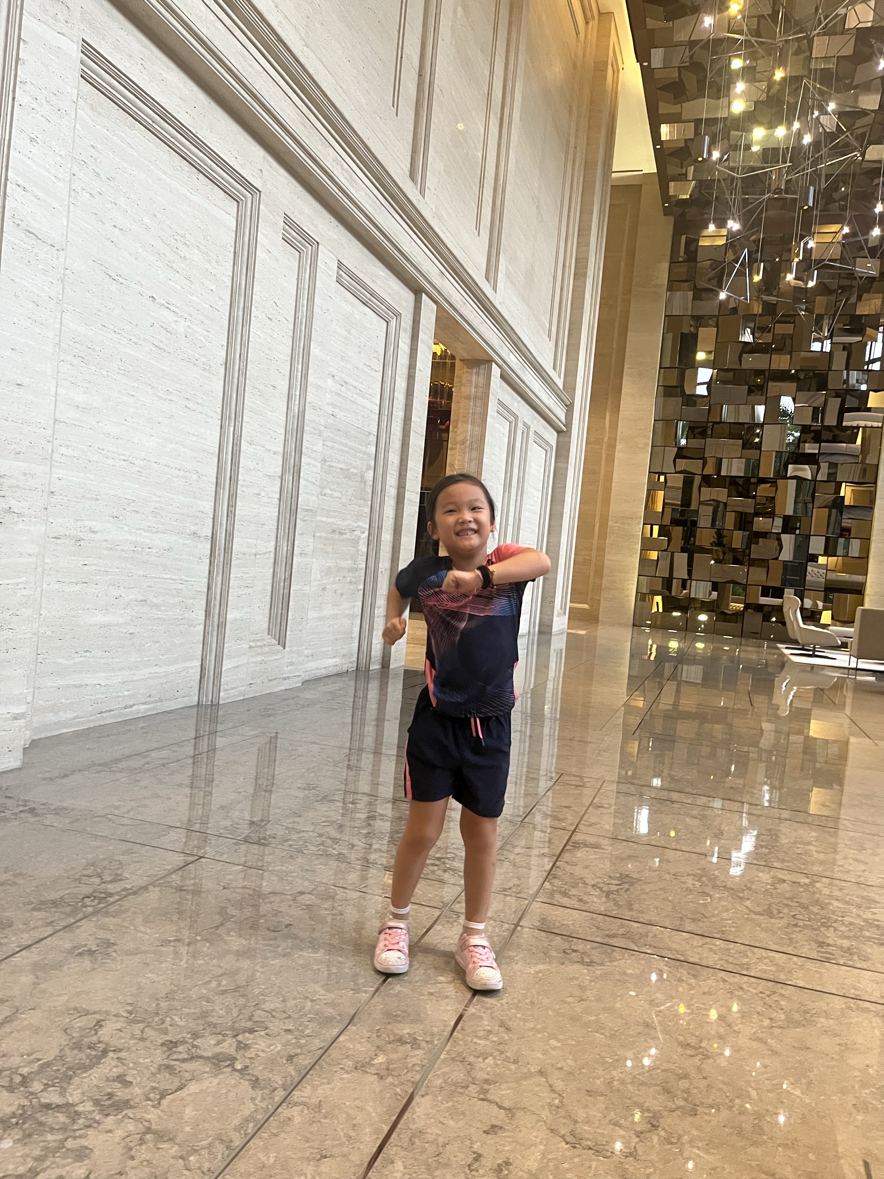 Good news! Lizzy is back to morning jog!!! She agreed to start jogging with me 2-3 times a week. I woke her up 5:50am, quite early. She didn’t complain as I gave her tons of kisses to slowly wake her up. We started slow, mainly to get out and breath fresh air. We might have jogged 3-4 min twice with walk in between for a total 20 min. We bumped into her school teacher and that was GREAT to give extra motivation to exercise in the morning. She was quite proud of telling her teacher that we were jogging.