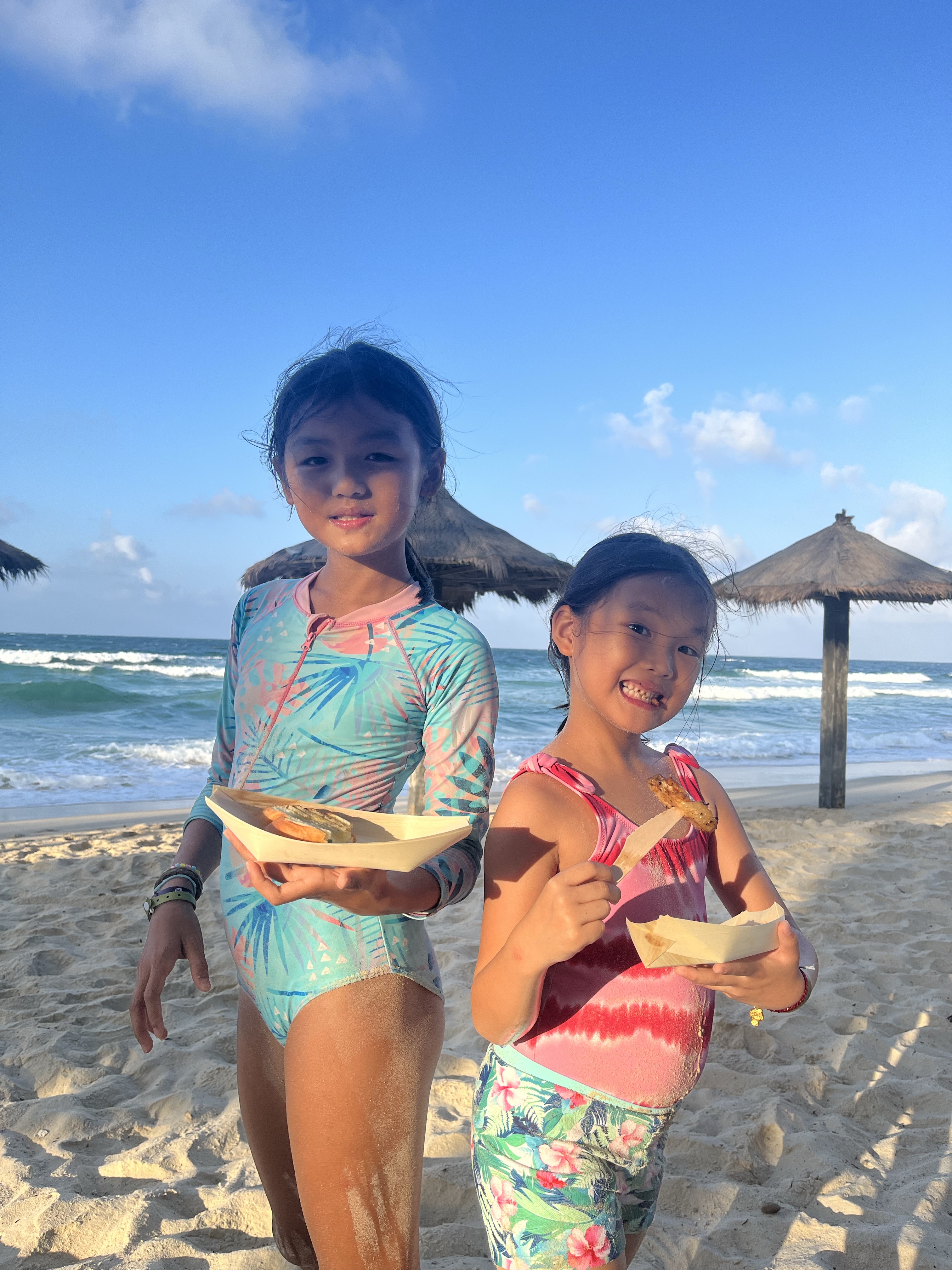 They had some snacks before we head back to the room for a deep cleaning….sand everywhere, to get ready for dinner, for their last serving of vanilla ice cream.
