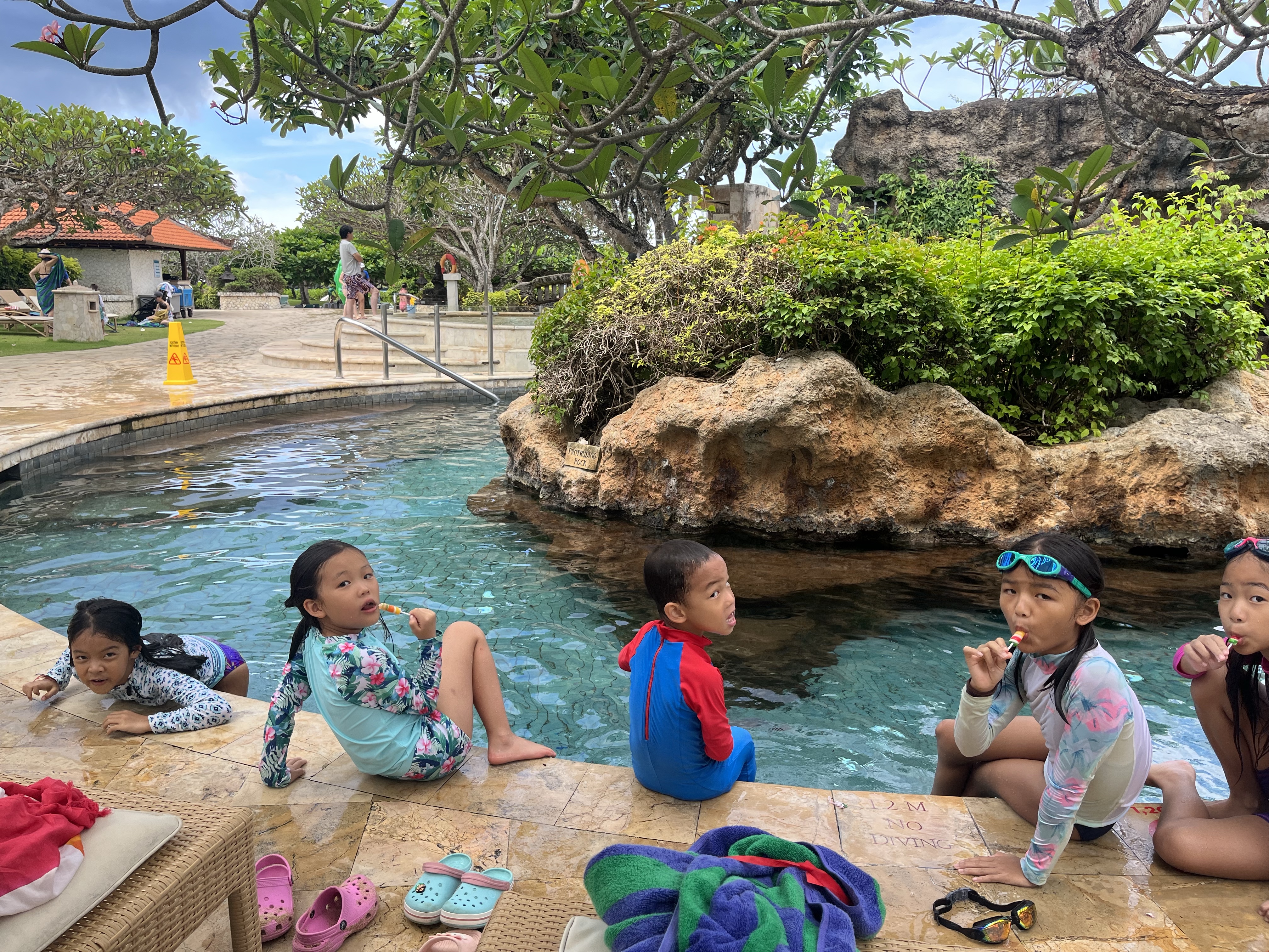 Sofia friend’s parents went for a day tour so I was the babysitter for the 4 kids. while 3 kids played in the pool, Lizzy and I went to pick her friend from the beach. Her family happened to be in Bali and staying next to our hotel, what a surprise. Lizzy used to play with this girl often while we were living in Manila. We didn’t even coordinate, they just happened to be in Bali. So Lizzy was more than happy to have a playdate with her friend!
