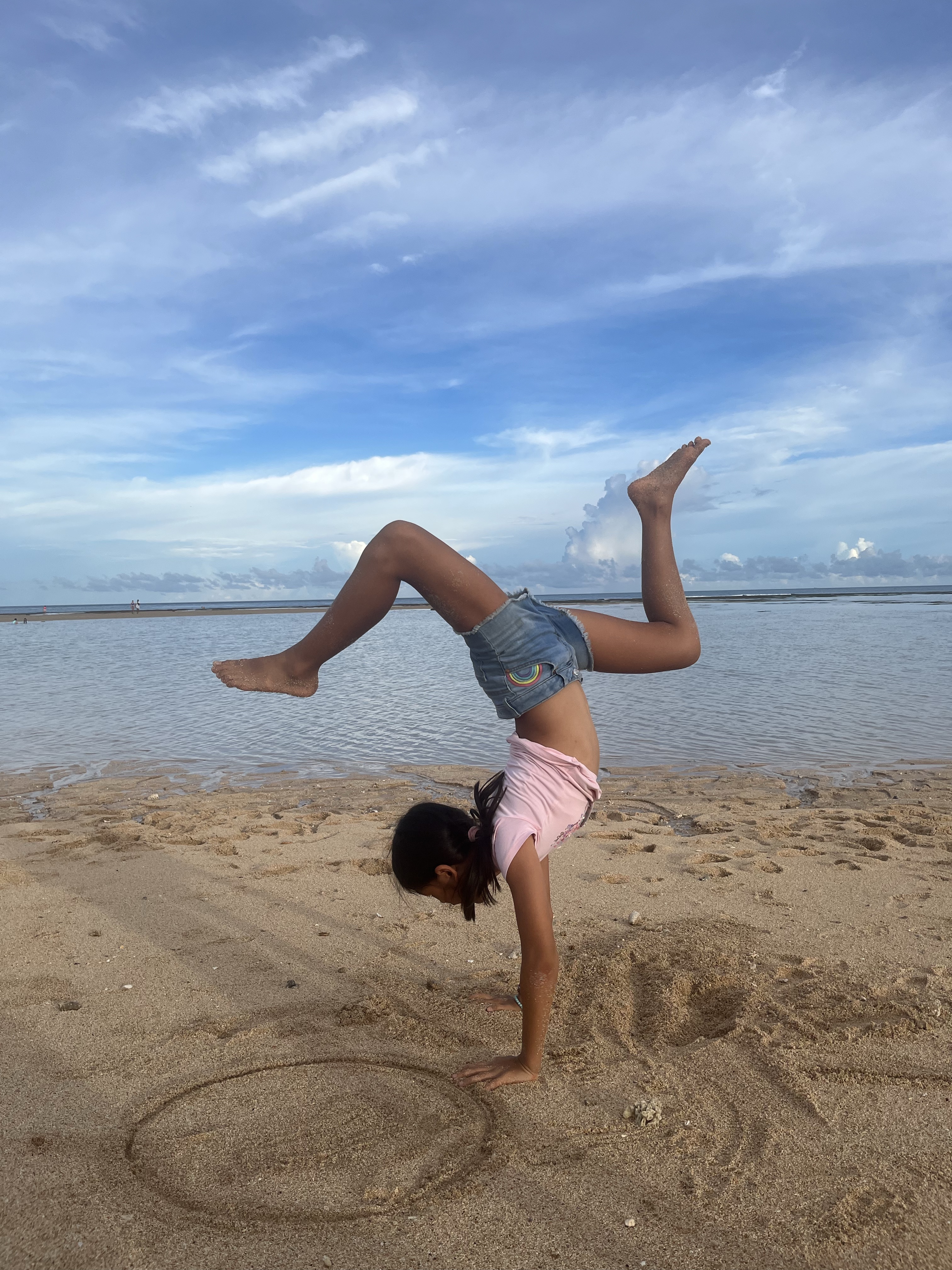 Daddy came back from golf (yes he played three days in a row, trying 3 out of 4 courses in Bali), and gave me a break to go to have a foot massage. When I came back it was so nice to be on the beach. It was low tie, not sunny, breezy. We spent a while on the beach.