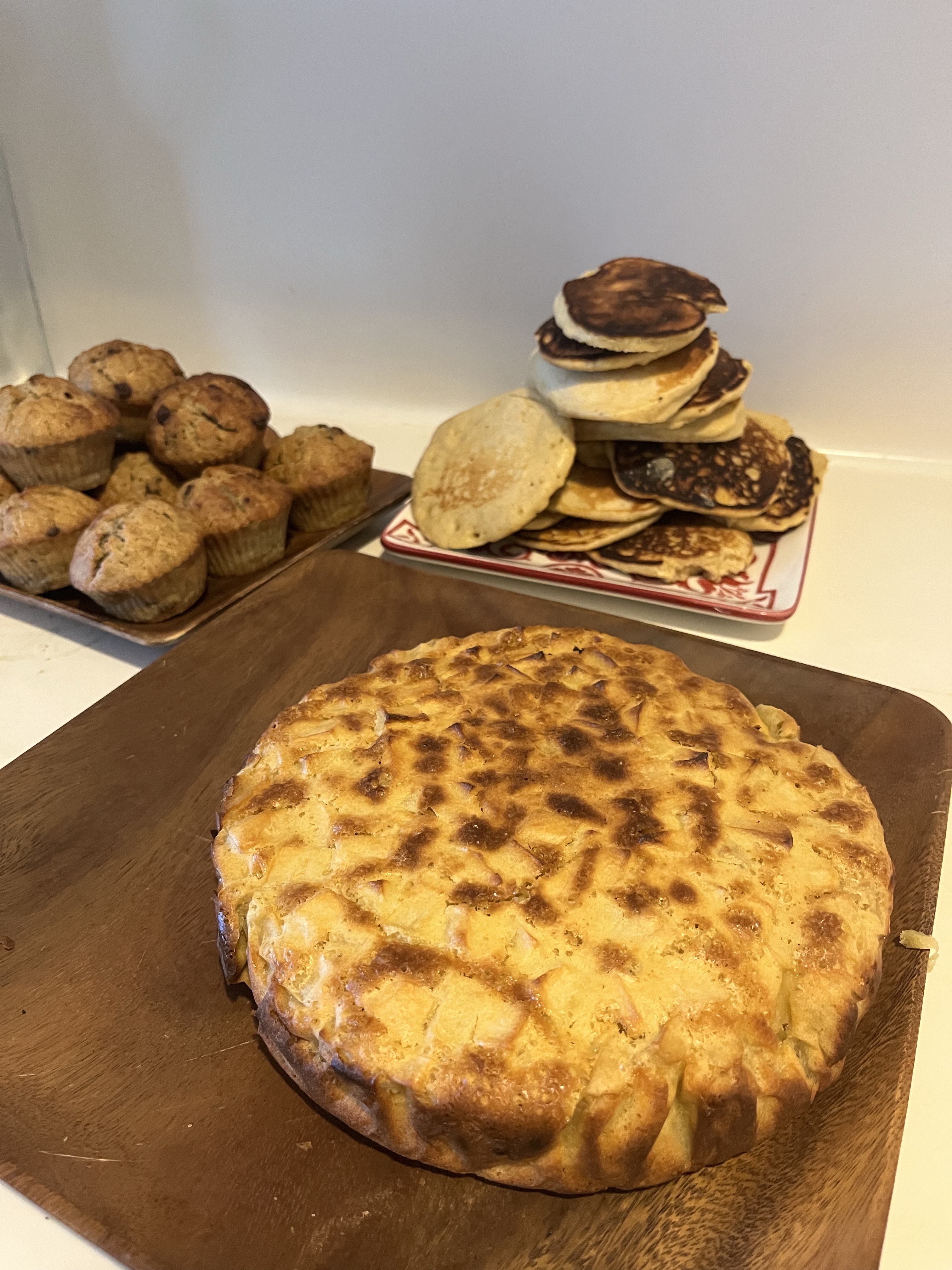 I did a lot of meal prep as our helper will take two weeks vacation to celebrate the end of ramadan with her family. I made apple cake, banana chocolate muffins, and almond oat pancakes