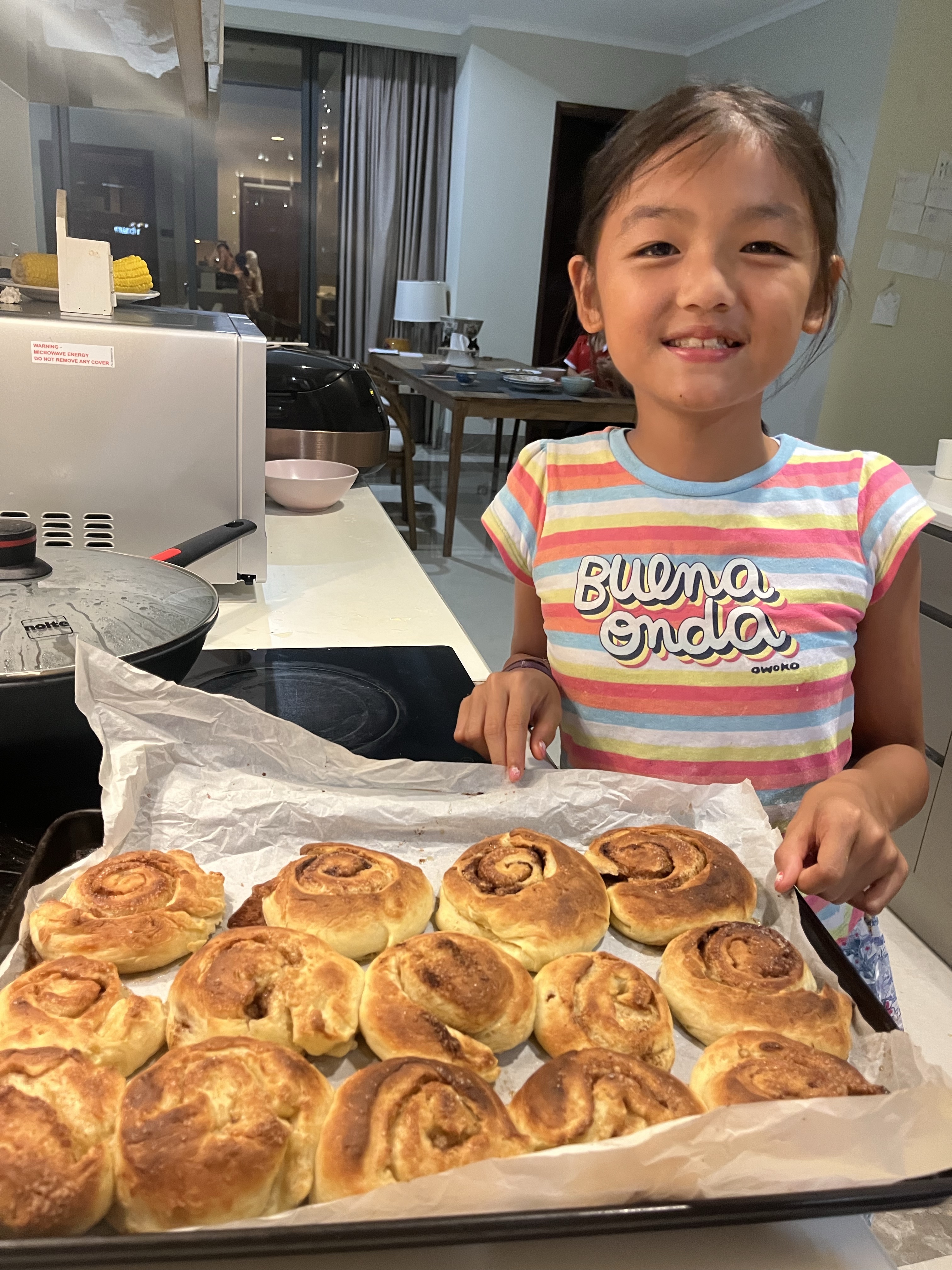 we had a fun, “productive”, pampering weekend. What a blast! The weekend started Friday as it was child led conference which finished 11am. Daddy to the girls to the mall for lunch and I went to have a lunch meeting. Once home, we both got a home massage for 90 min to kick off the weekend. Meanwhile, Sofia made cinnamon buns all by herself. I told her, if you can make this, you can cook any meal!!! She’s such a talented cook.