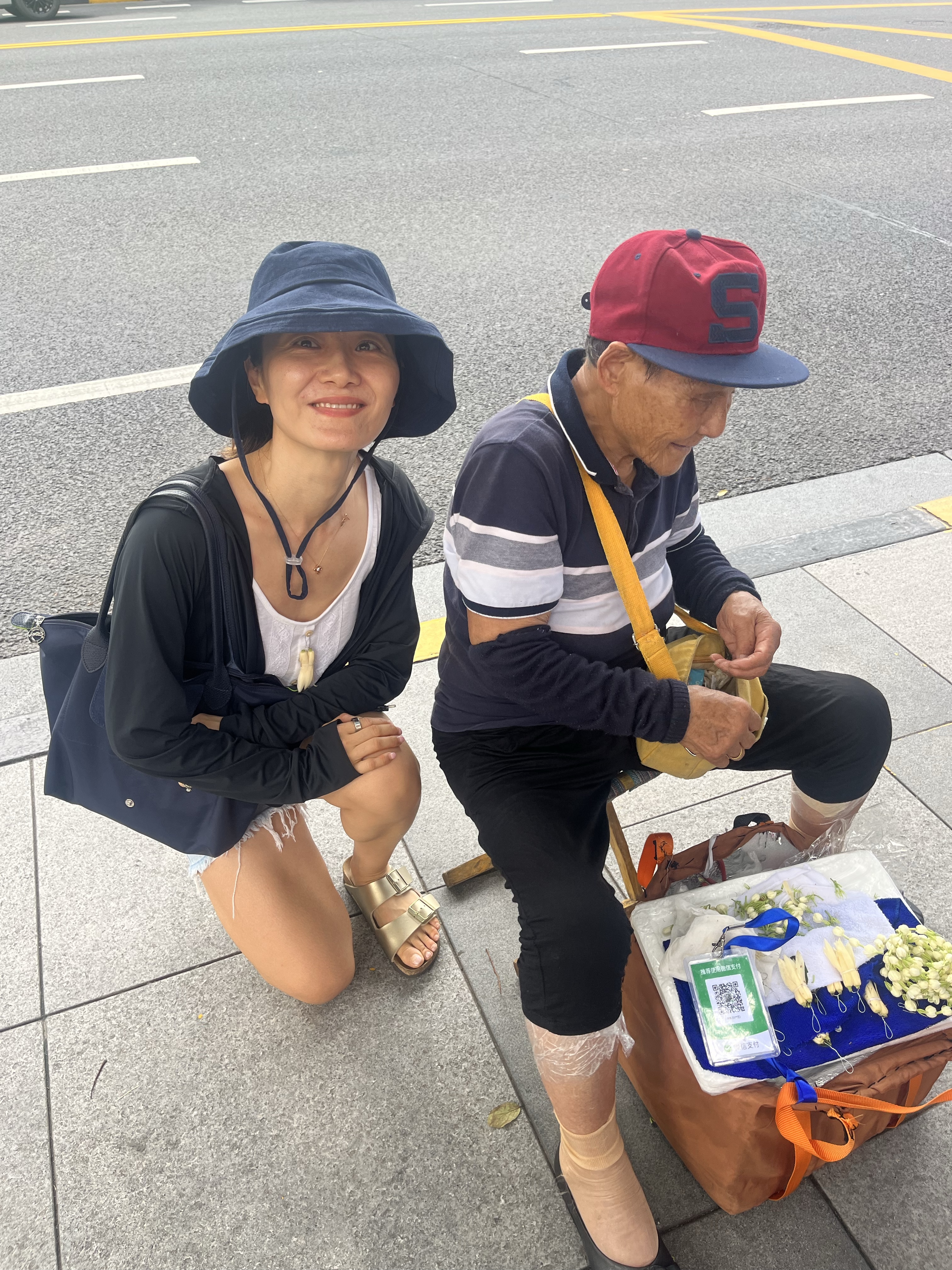 In one of our “dates”, I found this lady who sells decorating flower. I used to buy it all the time and wear it for the day (it smells amazing). I took a pic with her because although she’s very old, she ONLY accepts digital payment. That’s how it is everywhere in China, no cash, only digital payment.