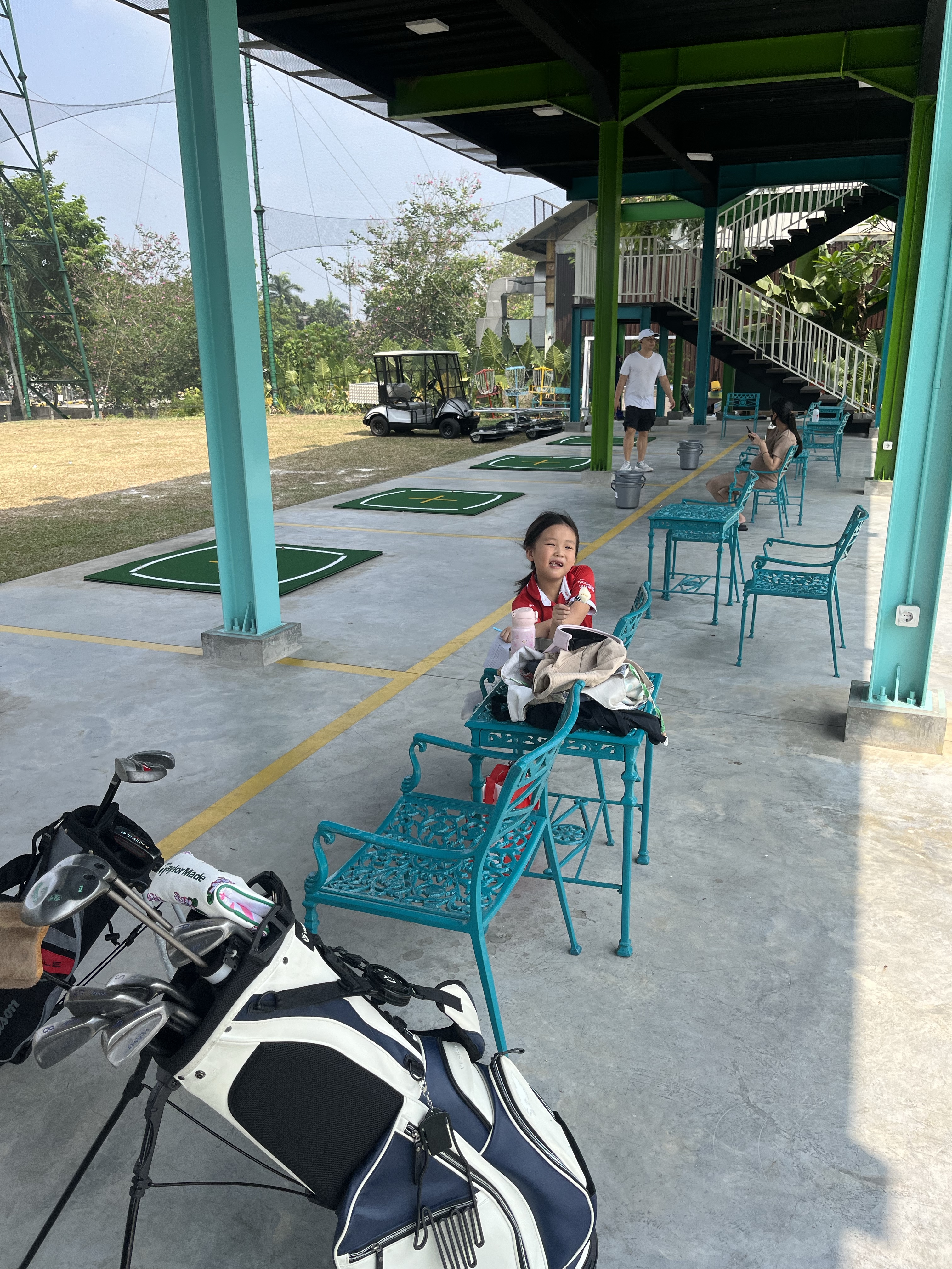 the girls did their kumon while waiting for their turn, and I read my book. Such a nice way to start the day outdoor facing greens.