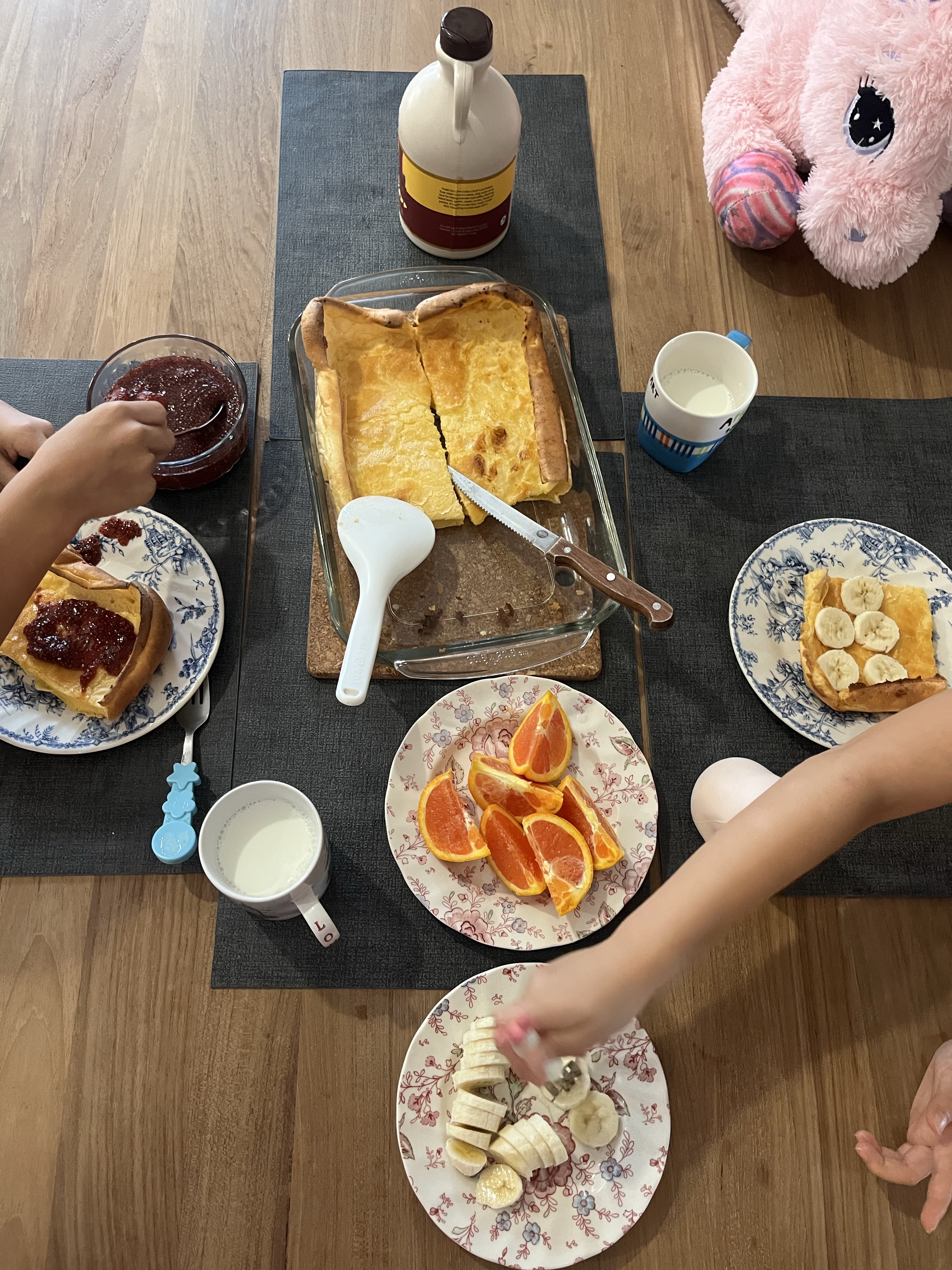Once the girls are up, they asked for dutch baby pancakes. It’s easy enough to make on the spot so I did.