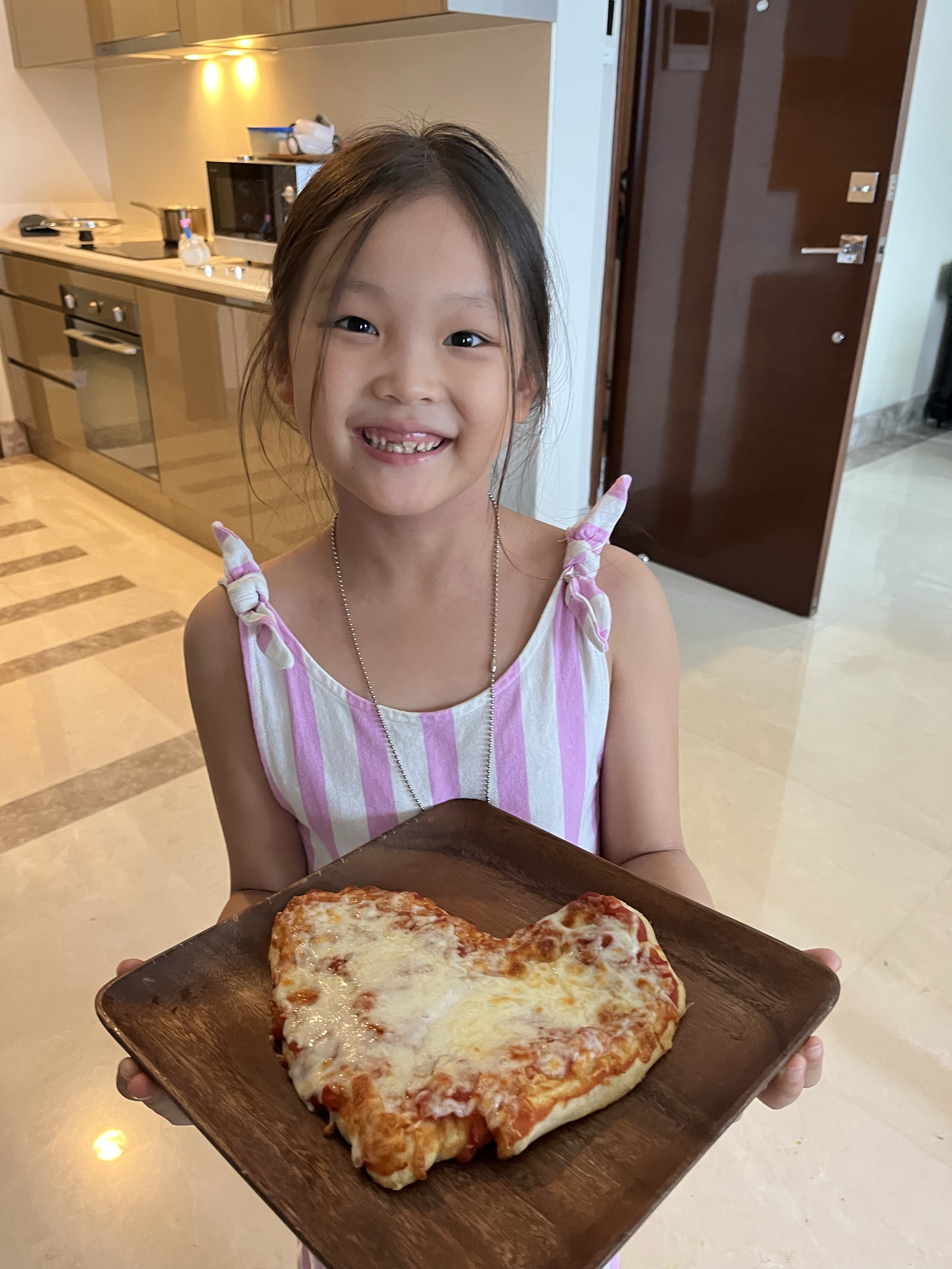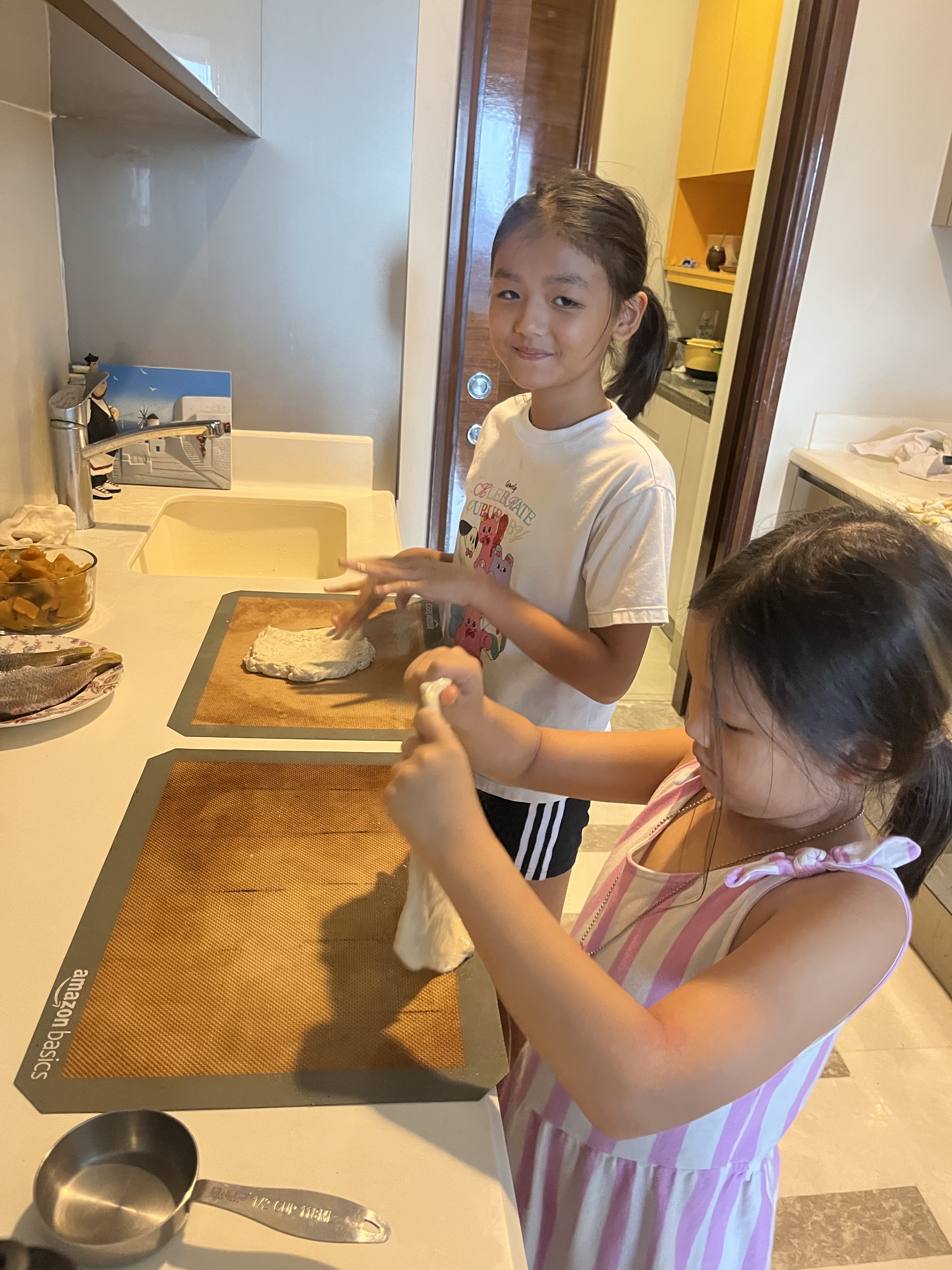 We made pizza, girls loved the process, and truly enjoy their “work”