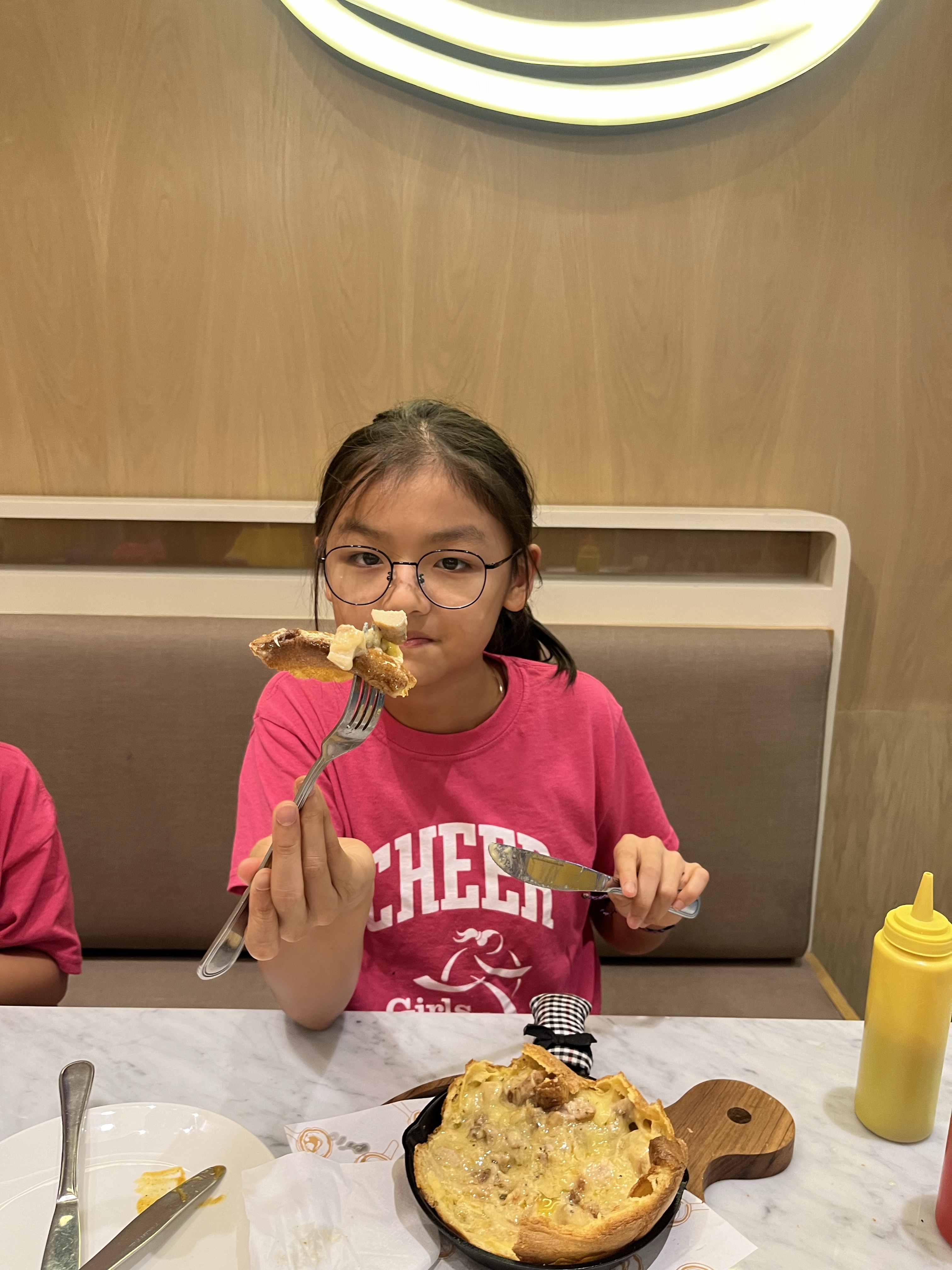 After our productive shopping trip, it was lunch time. We found a place called Dutch Baby, basically individual dutch baby with assorting toppings. Sofia got Alfredo chicken with extra cheese