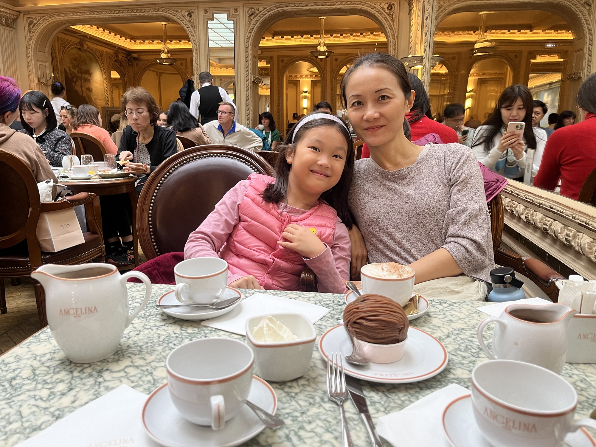 A colleague friend recommended Angelina, her favorite place in Paris so we went. I didn’t know it’s a popular place as there was a line to enter. We waited not for long to get a table. We ordered hot chocolate (what they are famous for) together with chestnut cake and macarons. The place is super pretty, very feminine, classic.