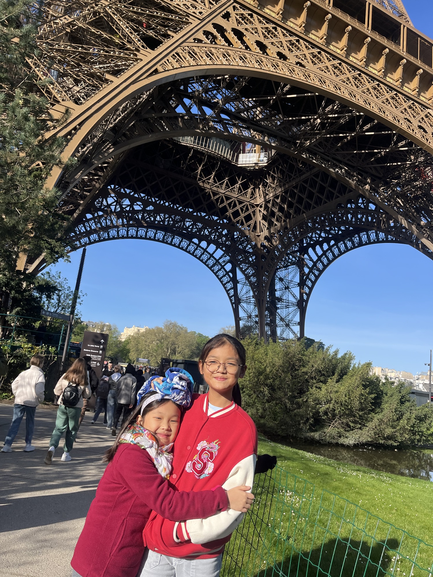 I reserved Eiffel Tower stairs tickets exactly 3 weeks before today, which is when the tickets are released for online purchase. Elevator tickets are impossible to get, and we wanted to climb up. Daddy waited at home. We got to first floor before 10am, pretty quiet. Sofia and I went to the toilet. When we came out Lizzy was lost and scared as she didn’t see us. Poor thing, I hugged her for a long time. We also discussed what to do next time we get lost in a place. Kids stay in place or ask someone to call mom.