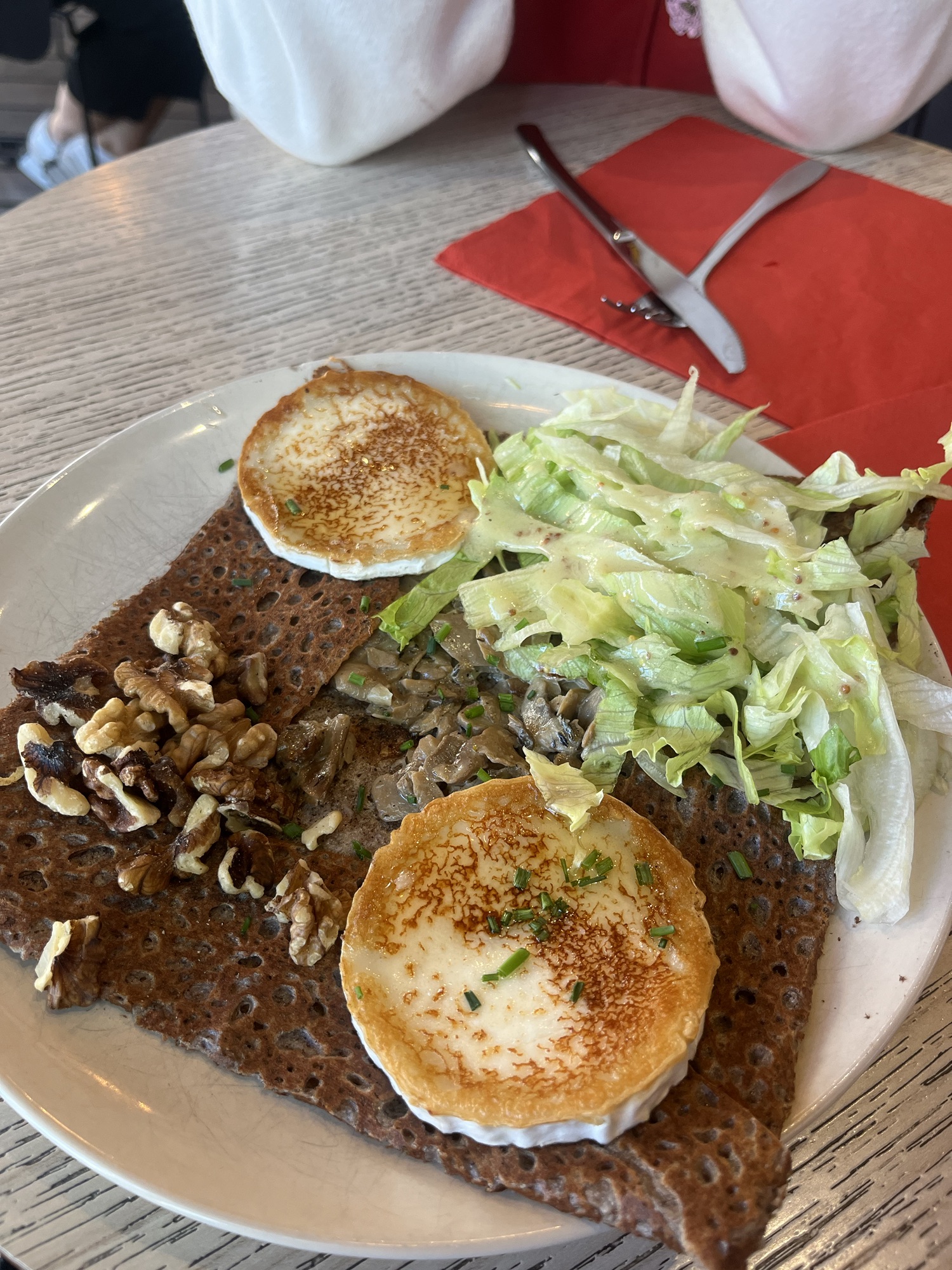 I ordered galette with goat cheese, honey, mushrooms, walnut and salad. It was out of this world!!! I declared it to be the best crepe to date. I wouldn’t have guessed this combo would work so well.