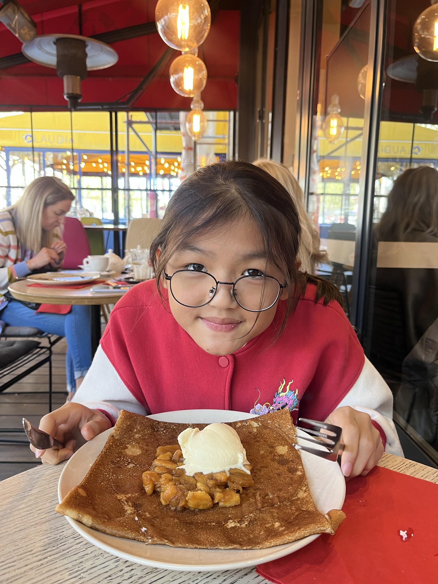 It was lunch time when we got off the boat. Lizzy wanted chicken, so she went home with daddy while Sofia and I went looking for crepes. I randomly searched creperie nearby and found a good rating place (Les Frères Bretons). When we got there, I immediately felt that I’ve been here before. We browsed through pics of Paris in 2019 and realized that we came here! What a coincidence!!!