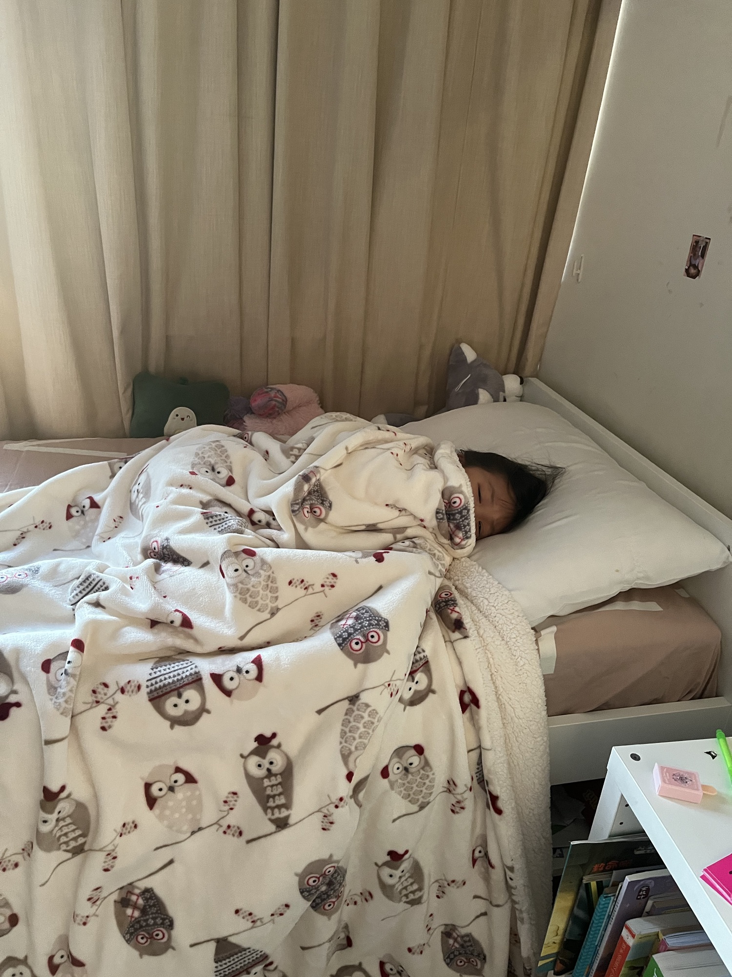 7pm: I went out to check the family. Girls were playing piano and doing mandarin homework. Hubby came to me and started talking about an investment idea. I was mentally tired so I responded in a dismissive way, which upset him. I felt bad about it few minutes later when I realized what I did. For the next hour, I assessed how mad he was as he was in his office and not coming out. I did what an adult should do, apologize, I did and went to bed. Girls came to say good night and went to sleep. I read for few minutes, and felt sleepy, still a bit worried, but knew whatever happens I will be in a better position to tackle it the next day after good sleep.