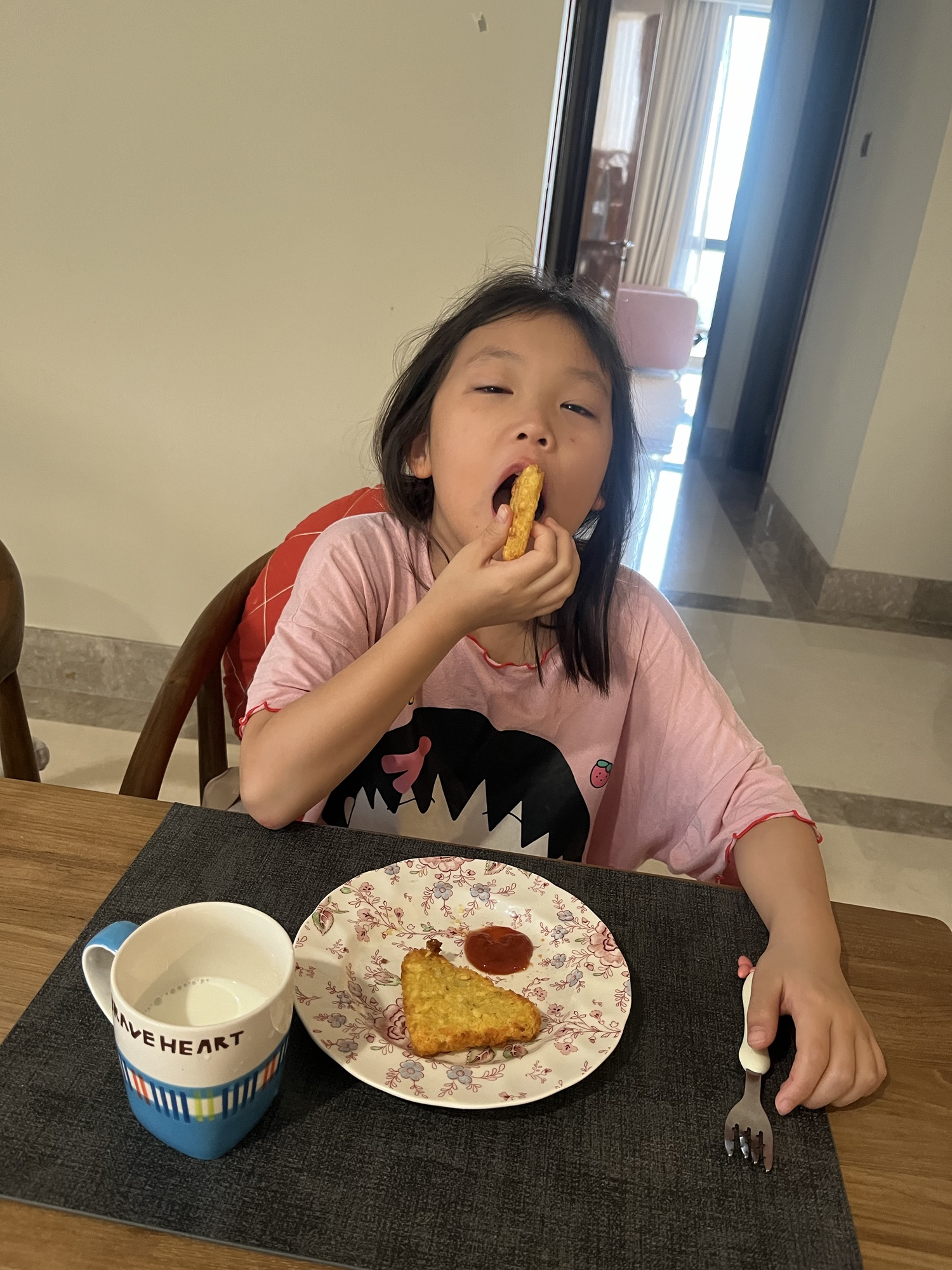 6:30am she was ready to tackle her breakfast: hashbrowns