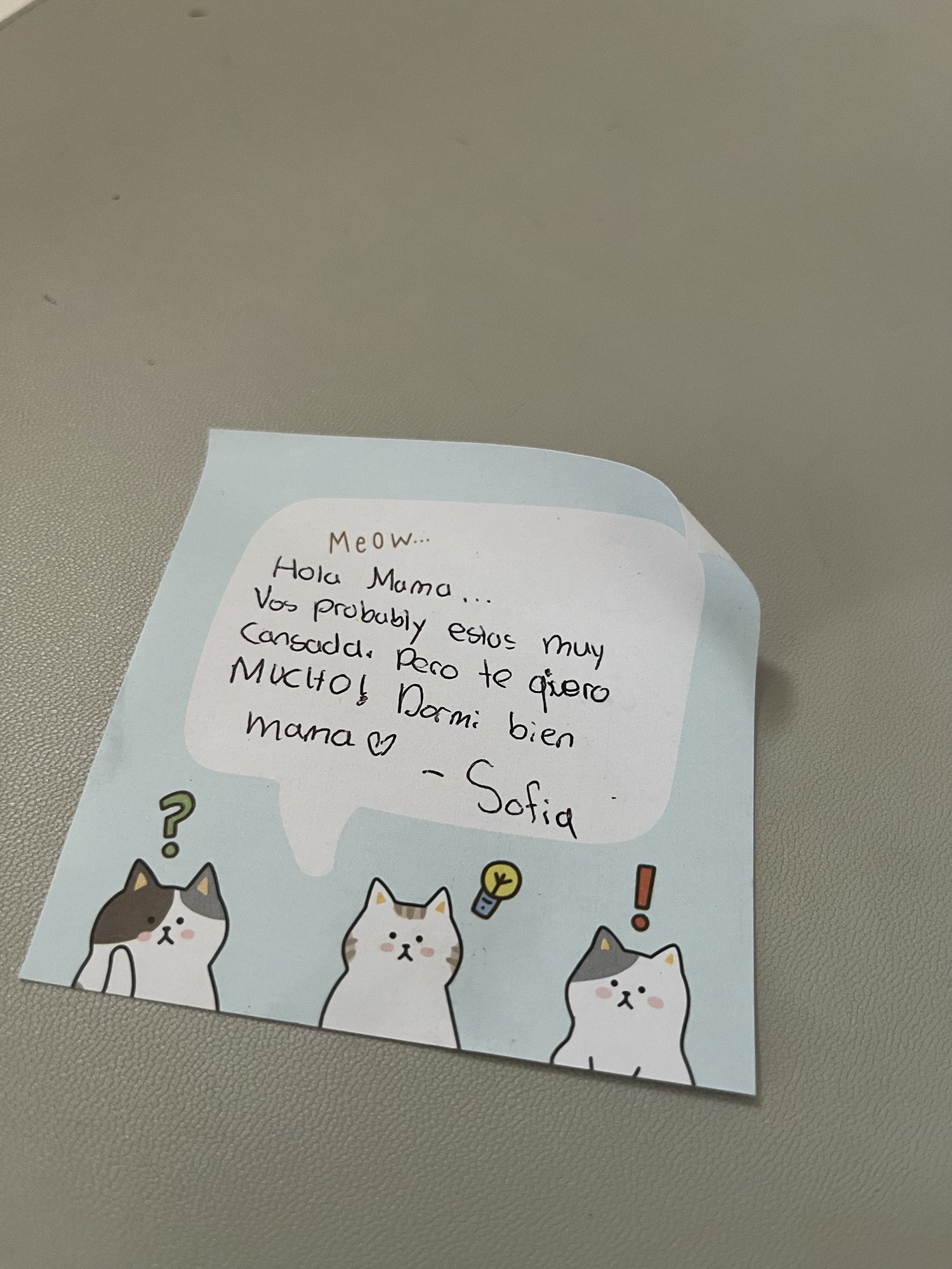 9pm: got home, ate leftover dinner, both Lizzy and hubby were sleeping already. Sofia left me a note, so sweet.