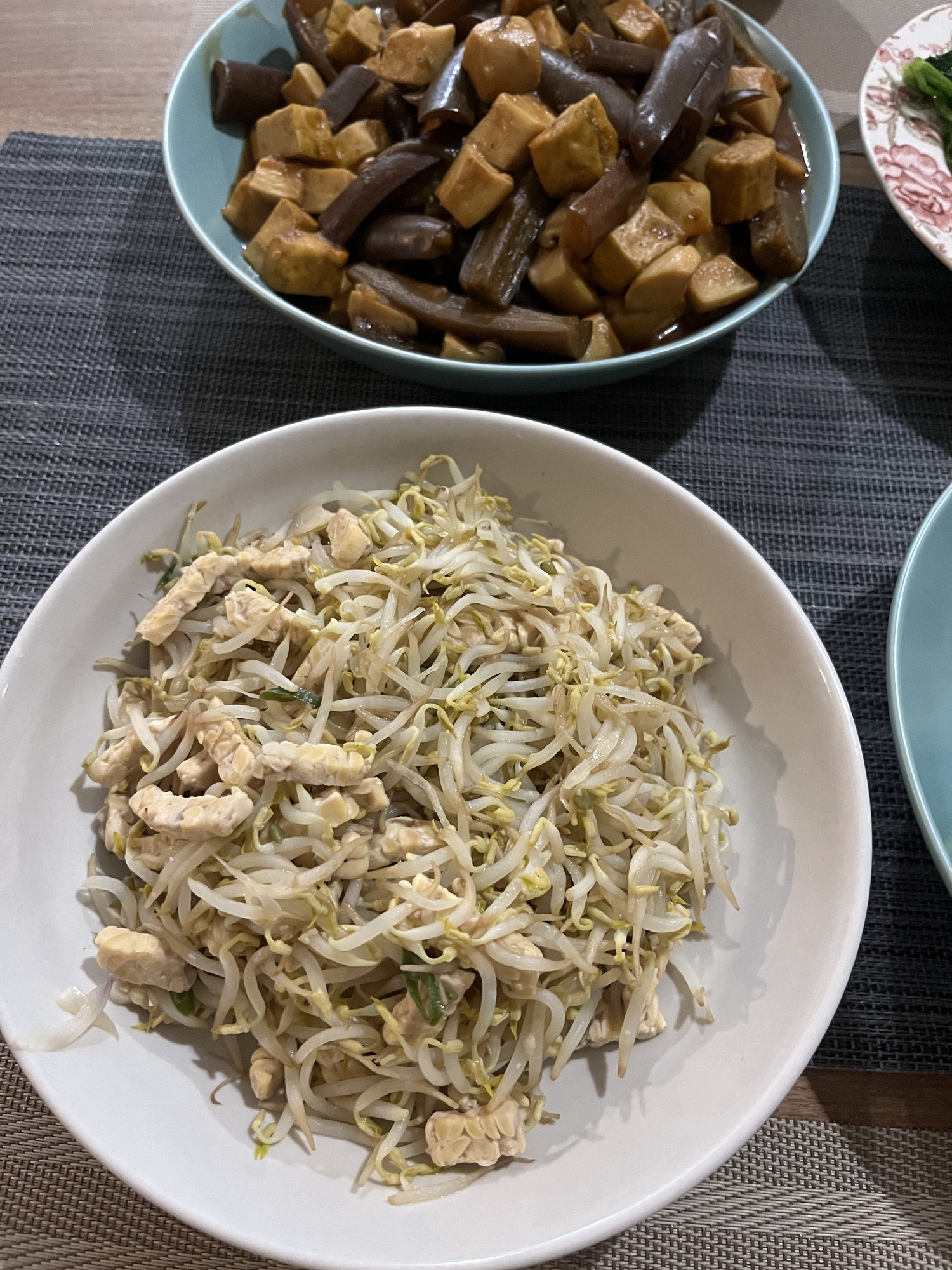 replicating some vegetables dishes we had in Sumba, this one is bean sprouts with chili and tempeh. The one above is eggplant and tofu cooked with soy sauce and Gochujang.