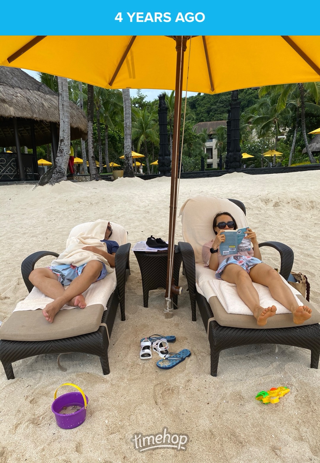 - This pic of us in our first post-pandemic trip to Boracay made me laugh. It portraits us so well. Girls were playing on the sand, me reading Panchiko, husband taking a nap (at 11am) because why not?!