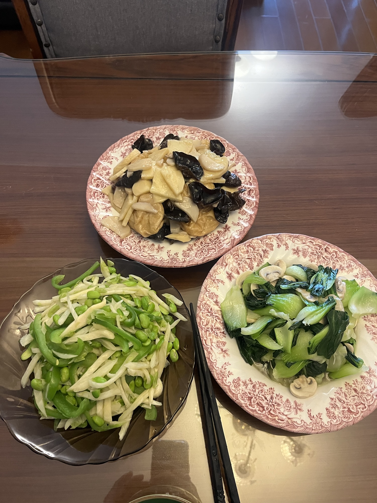 Got home 10:30am, chat with mom while eating my beloved Kabocha. Then mom made few vegetables dishes for lunch.