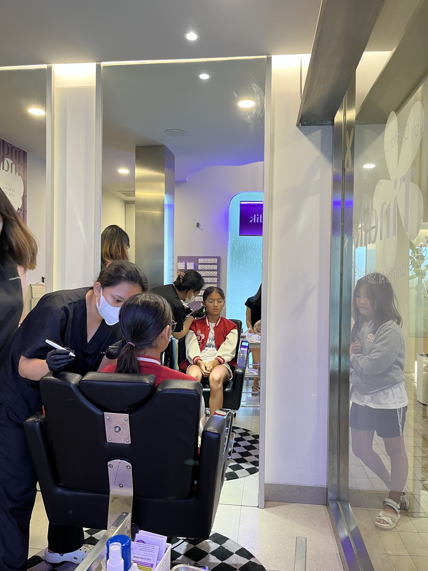 We had an appointment for Sofia’s ear piercing and we went altogether. The whole process was 15 min and it went smoothly.
