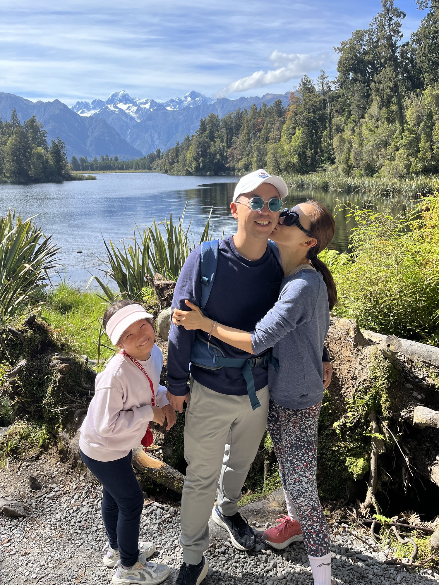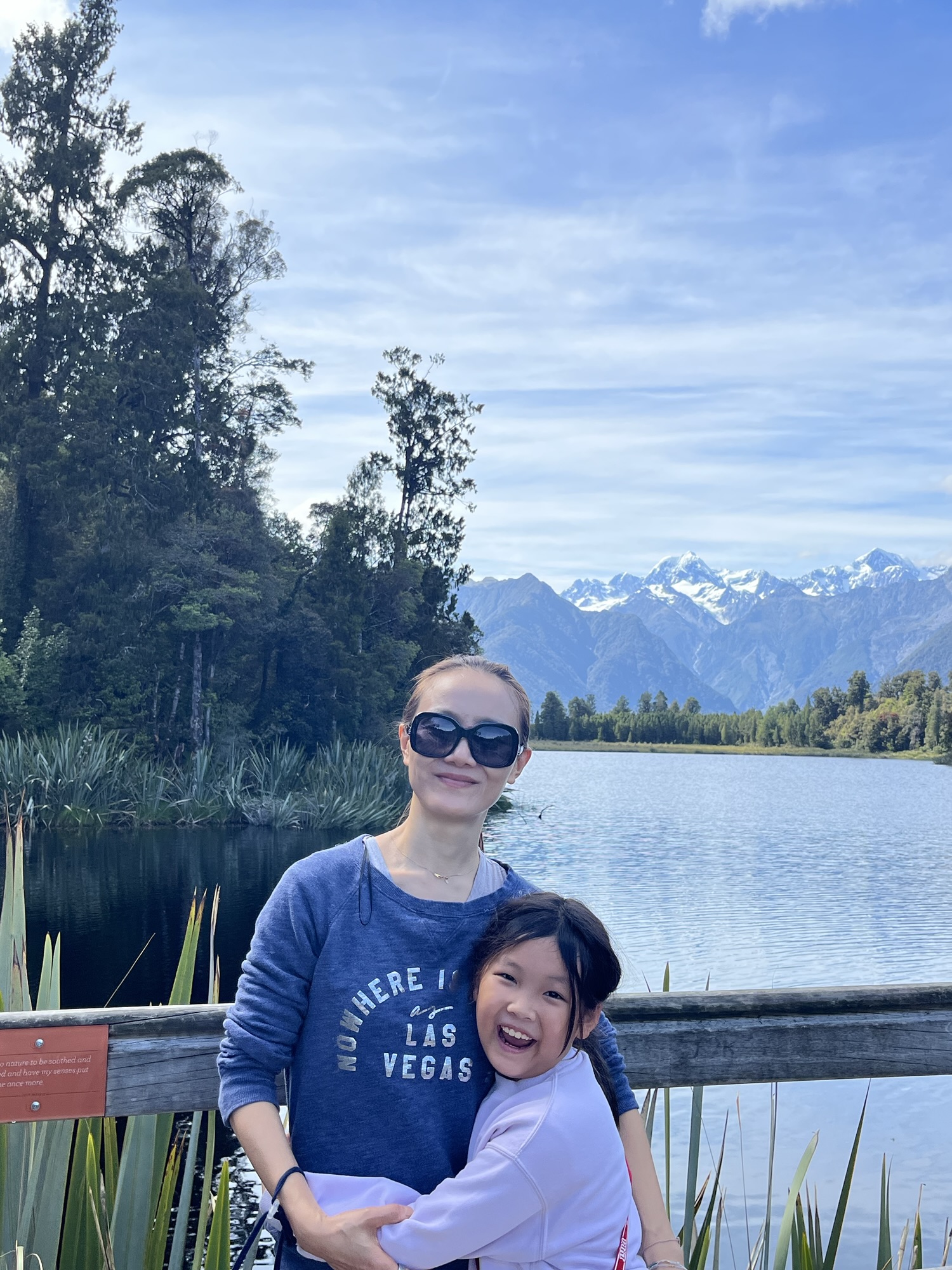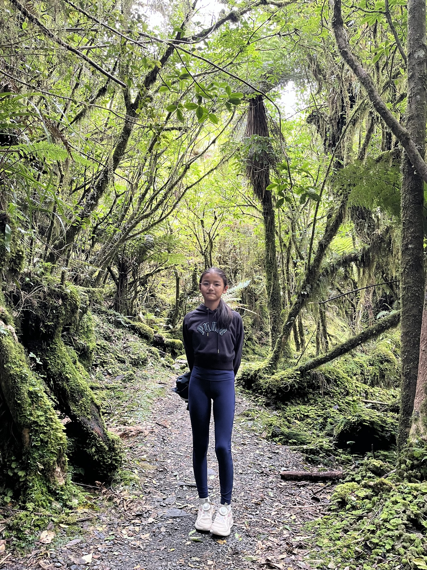 Then we all went to explore Lake Matheson trail, 90 min walk that is well paved and easy to walk for all ages. Lizzy at high energy at the start