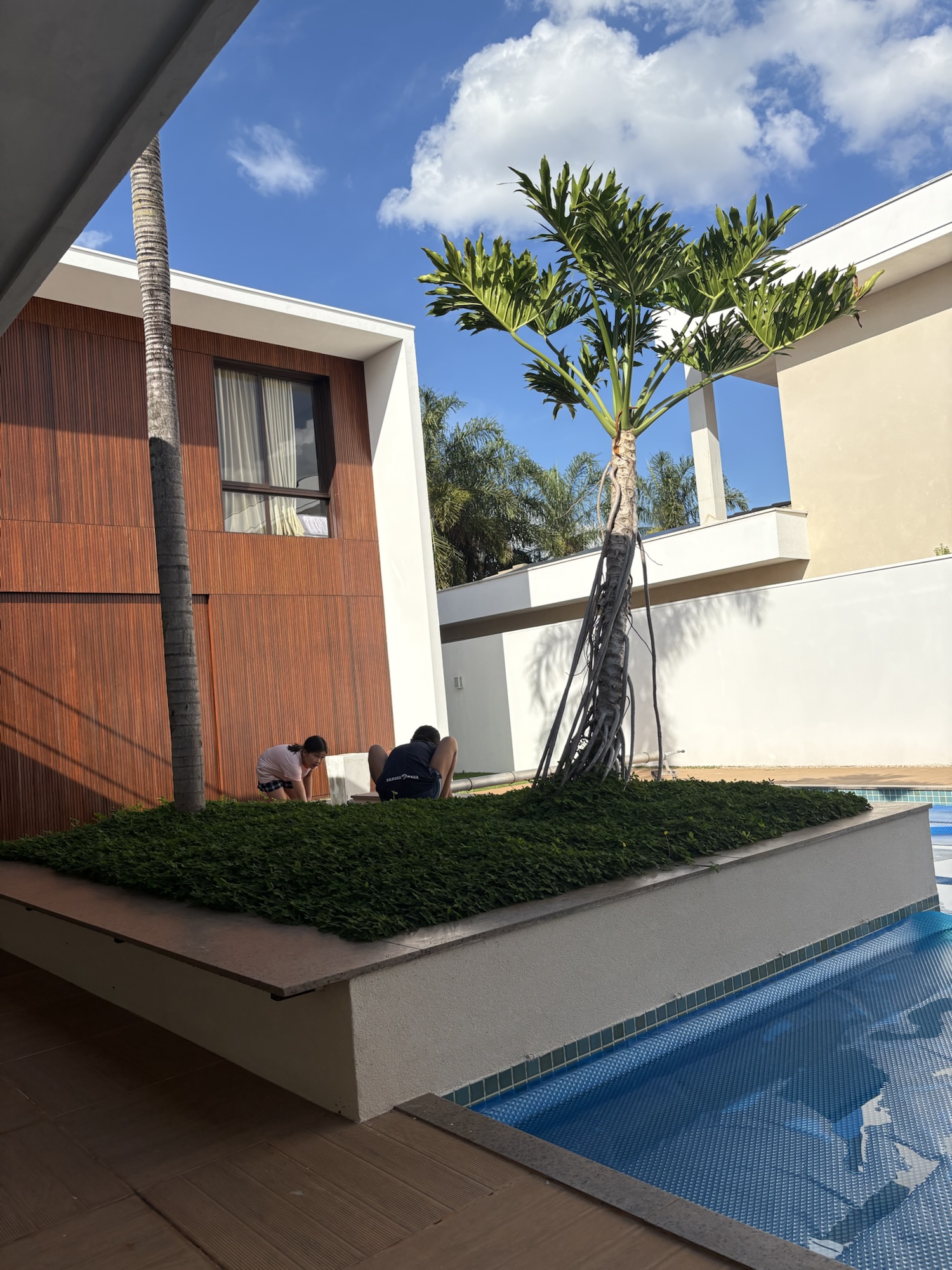 Girls explored the swimming pool, the garden when the sun was up as sudden thundersome could happen any moment