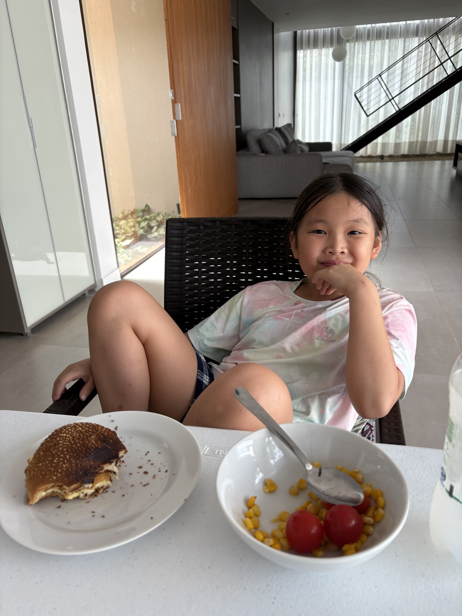 Sunday 5pm, I was preparing dinner with music on the background. Girls sit in our (borrowed) camping table with cut out fruit and doing mandarin. I said: this feels normal again, finally! Sofia looked at me and smiled.